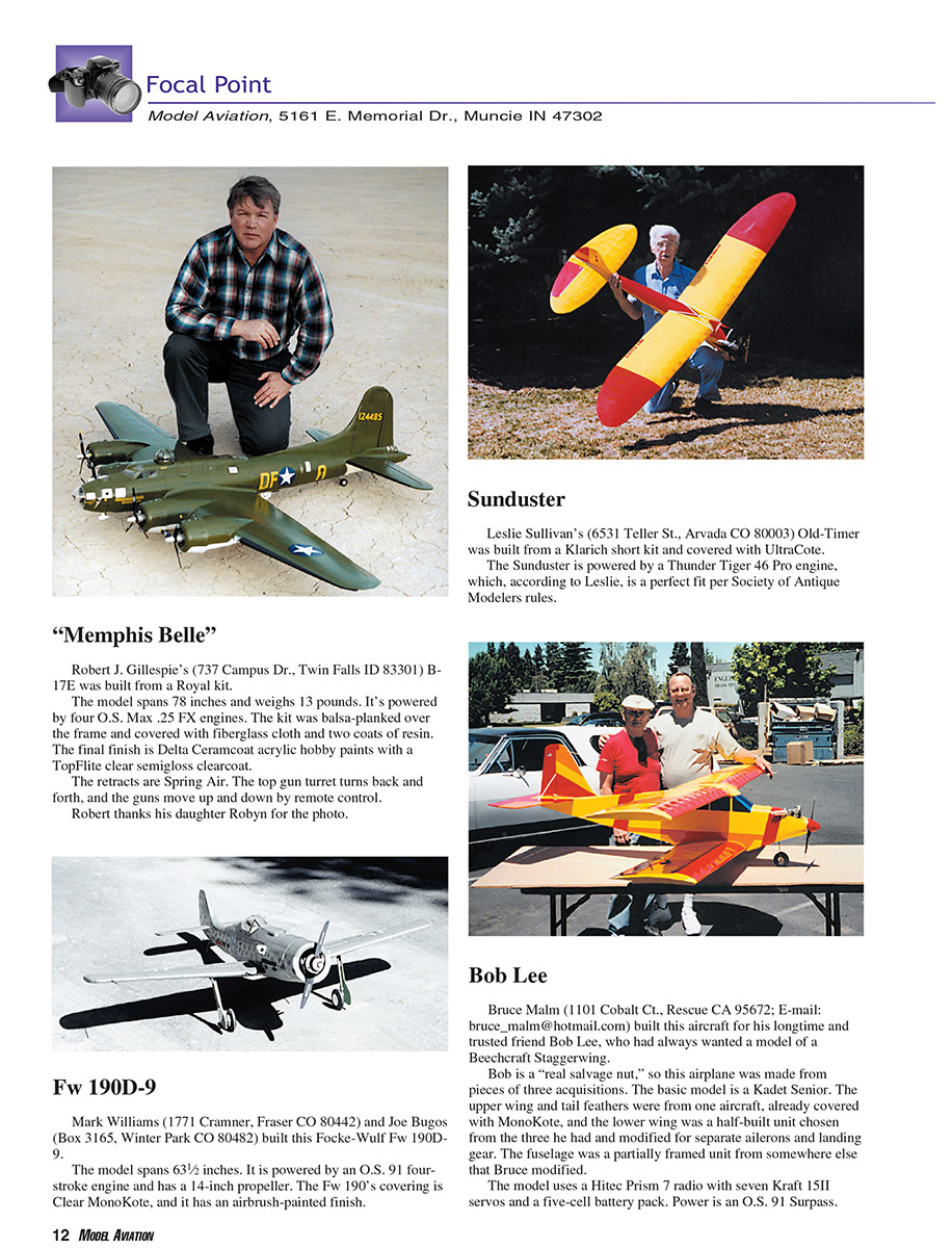 Send to: Model Aviation, 5161 E. Memorial Dr., Muncie IN 47302;