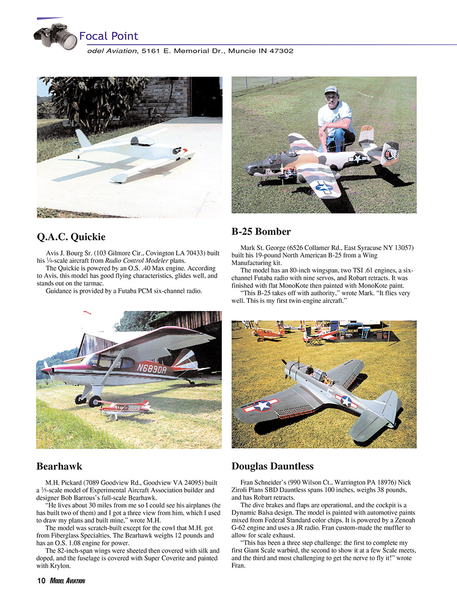 Send to: Model Aviation, 5161 E. Memorial Dr., Muncie IN 47302;