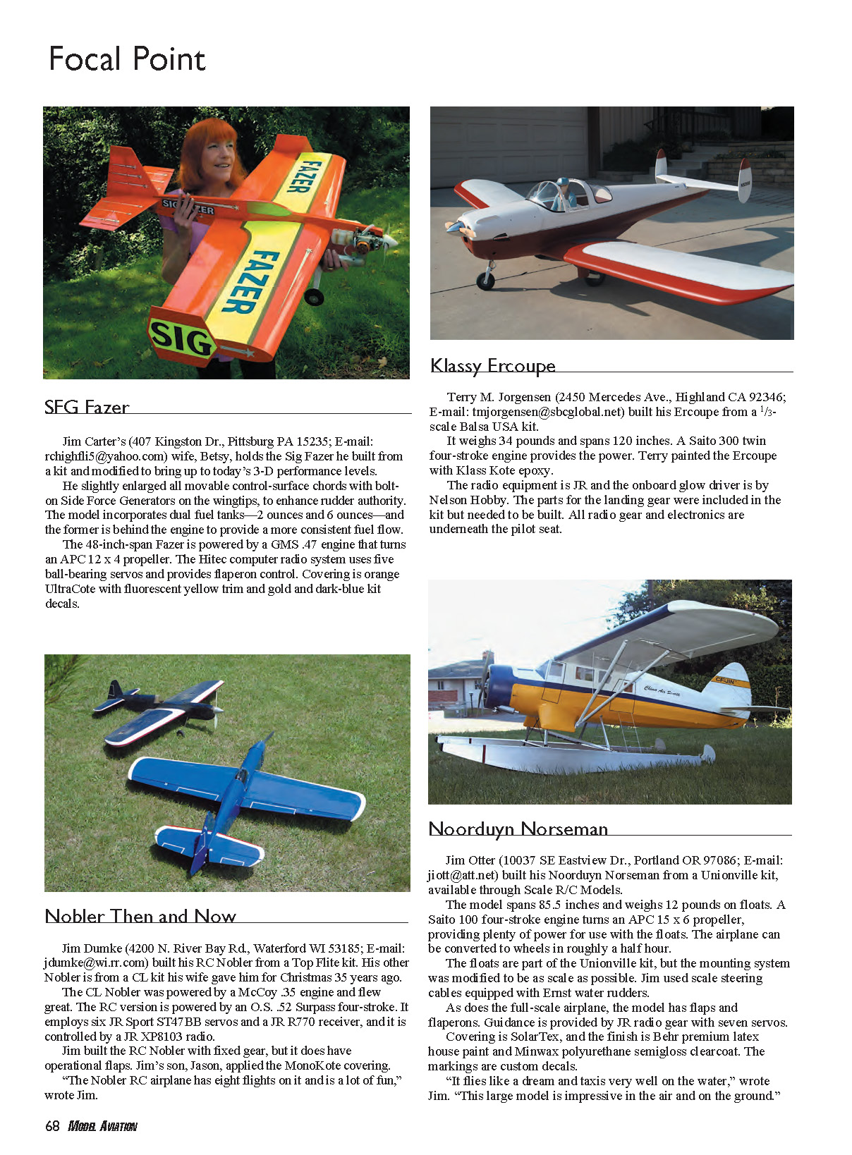jdumke@wi.rr.com) built his RC Nobler from a Top Flite kit. His other