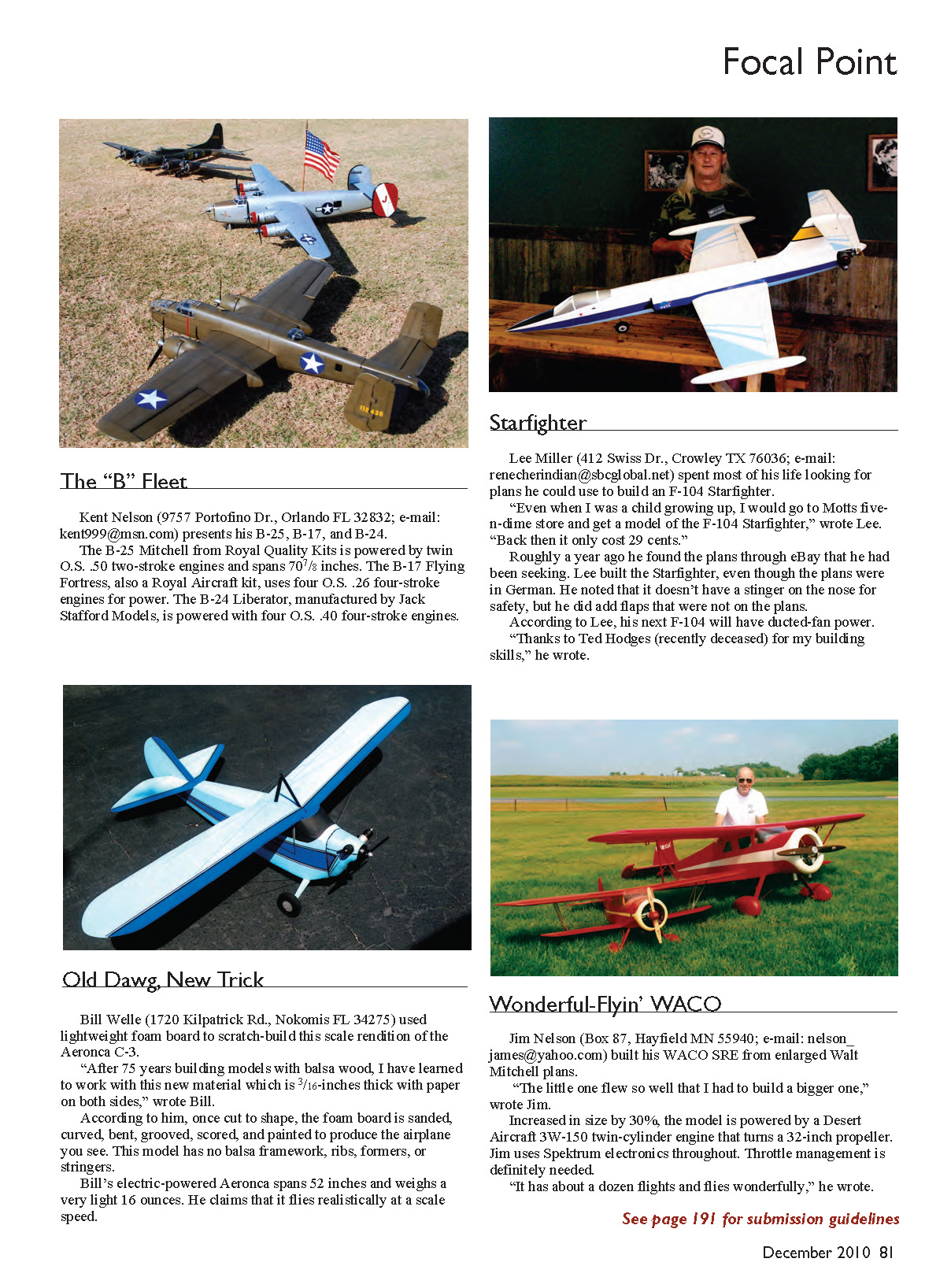 flyer, a 3-D flyer based on the F-4F Wildcat, an indoor flyer, and a