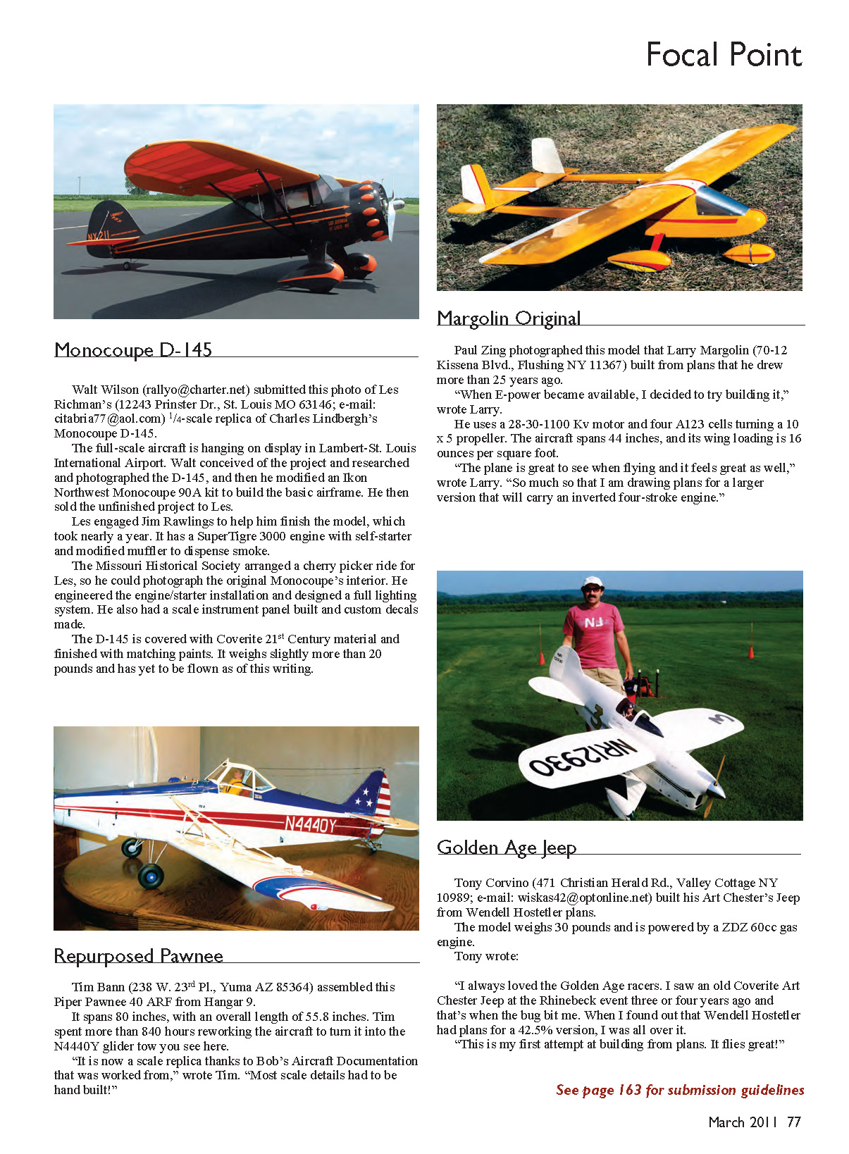 citabria77@aol.com) 1/4-scale replica of Charles Lindbergh’s