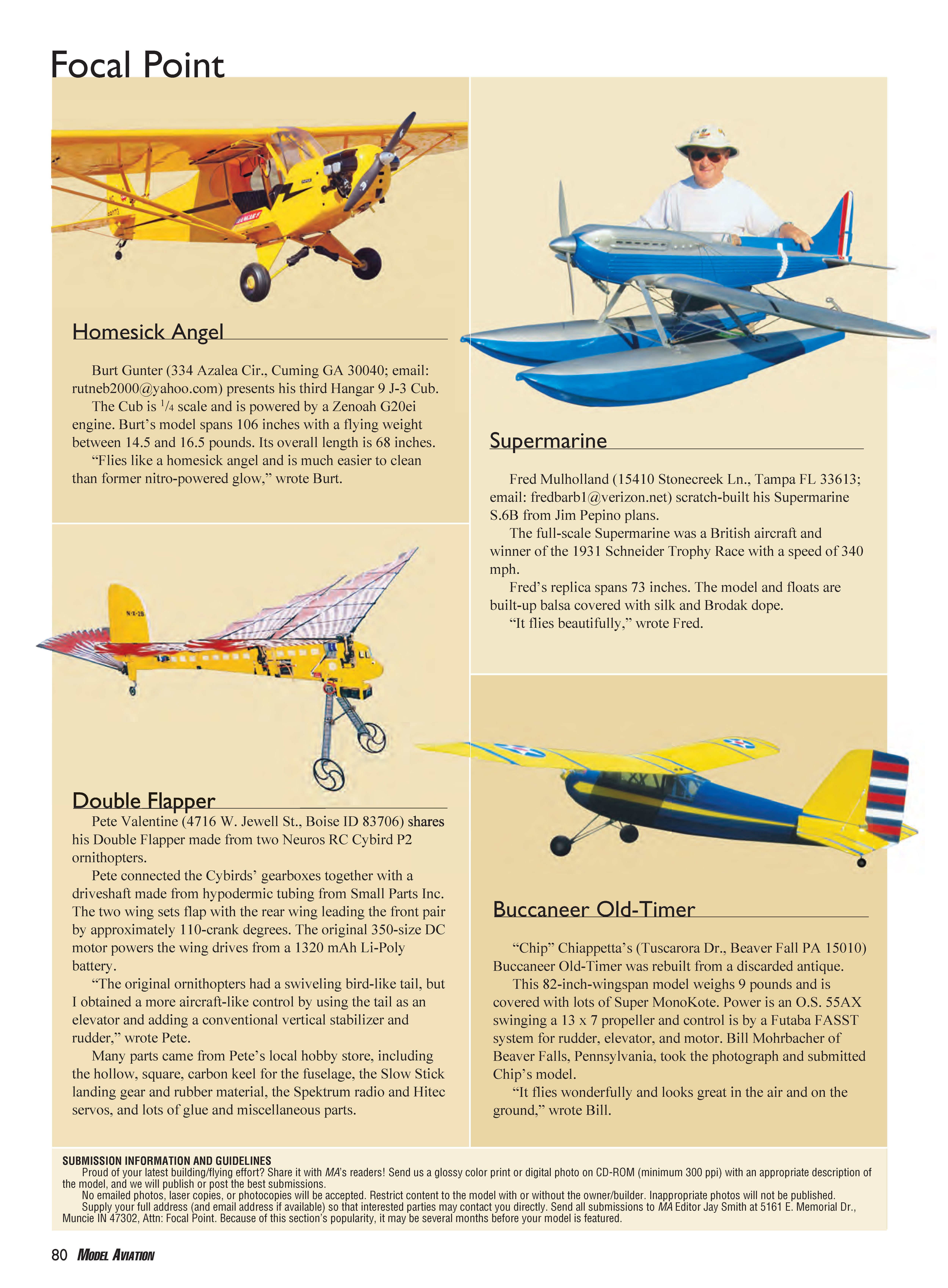 Proud of your latest building/flying effort? Share it with MA’s readers! Send us a glossy color print or digital photo on CD-ROM (minimum 300 ppi) with an appropriate description of