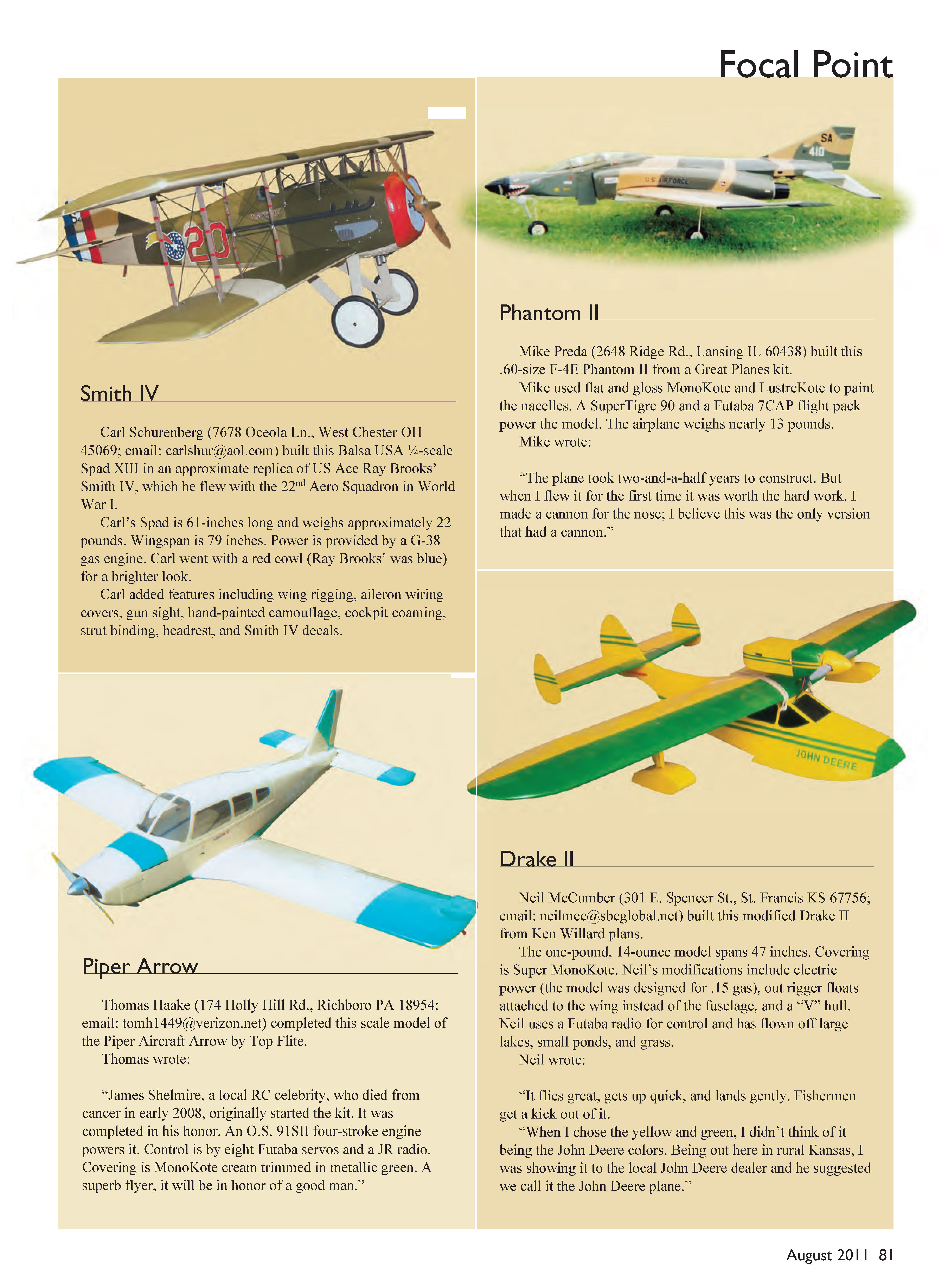 Muncie IN 47302, Attn: Focal Point. Because of this section’s popularity, it may be several months before your model is featured.