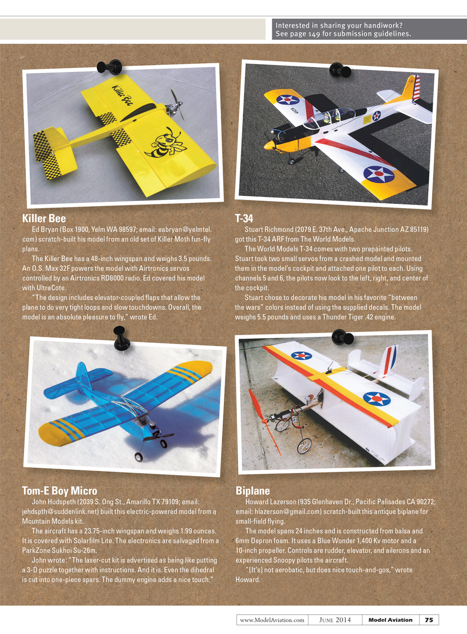 Howard Lazerson (935 Glenhaven Dr., Pacific Palisades CA 90272; email: hlazerson@gmail.com) scratch-built this antique biplane for small-field flying.