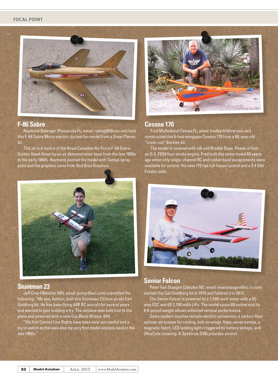 “My son, Ashton, built this Stuntman 23 from an old Carl Goldberg kit. He has been flying ARF RC aircraft for several years and wanted to give building a try. The airplane was built true to the plans and powered with a new Cox Black Widow .049.