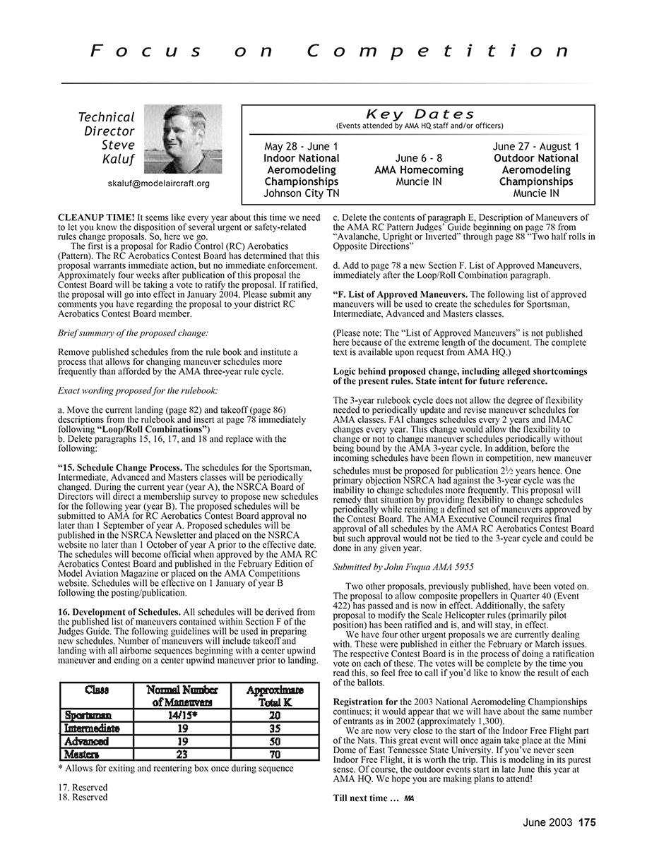 approval of all schedules by the AMA RC Aerobatics Contest Board