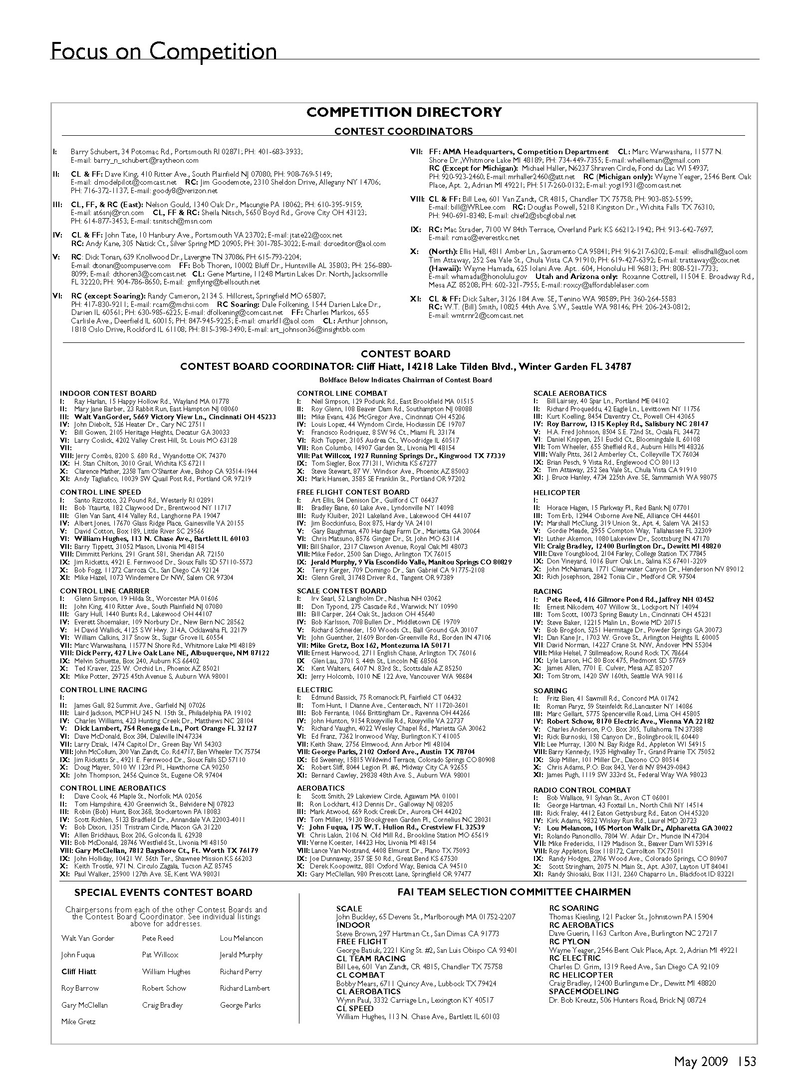 the Contest Board Coordinator. See individual listings