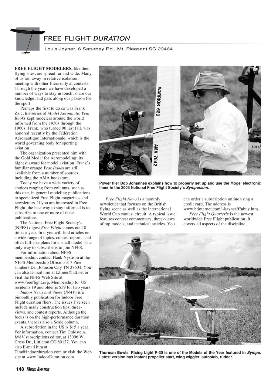 timer in the 2003 National Free Flight Society’s Symposium.