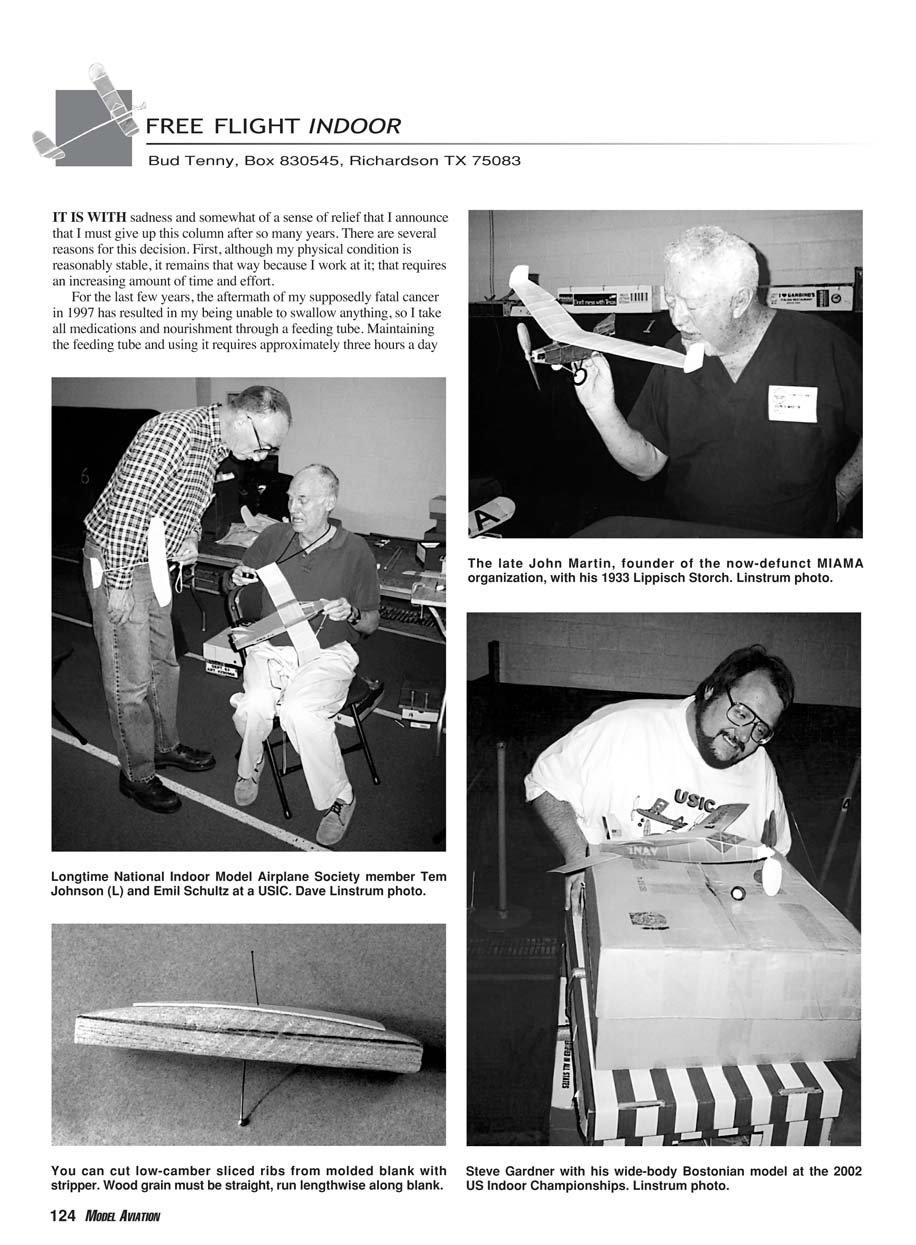 Longtime National Indoor Model Airplane Society member Tem