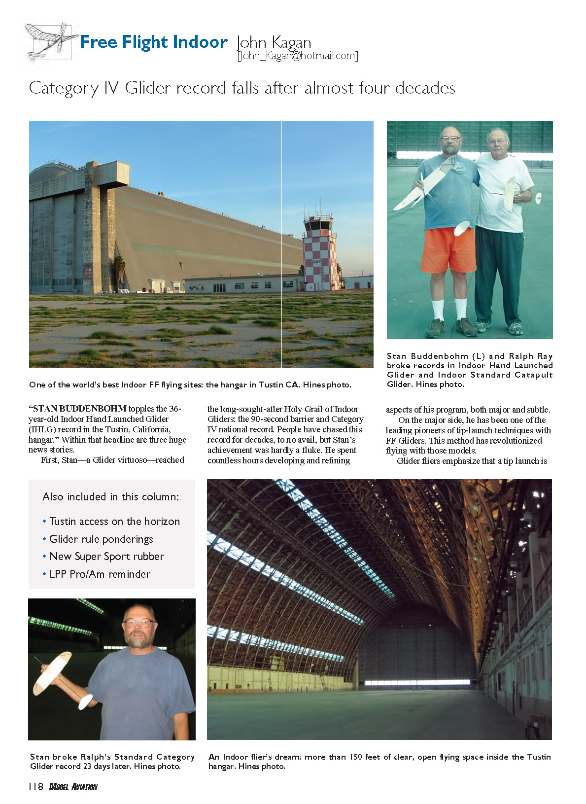 One of the world’s best Indoor FF flying sites: the hangar in Tustin CA. Hines photo. Glider. Hines photo.