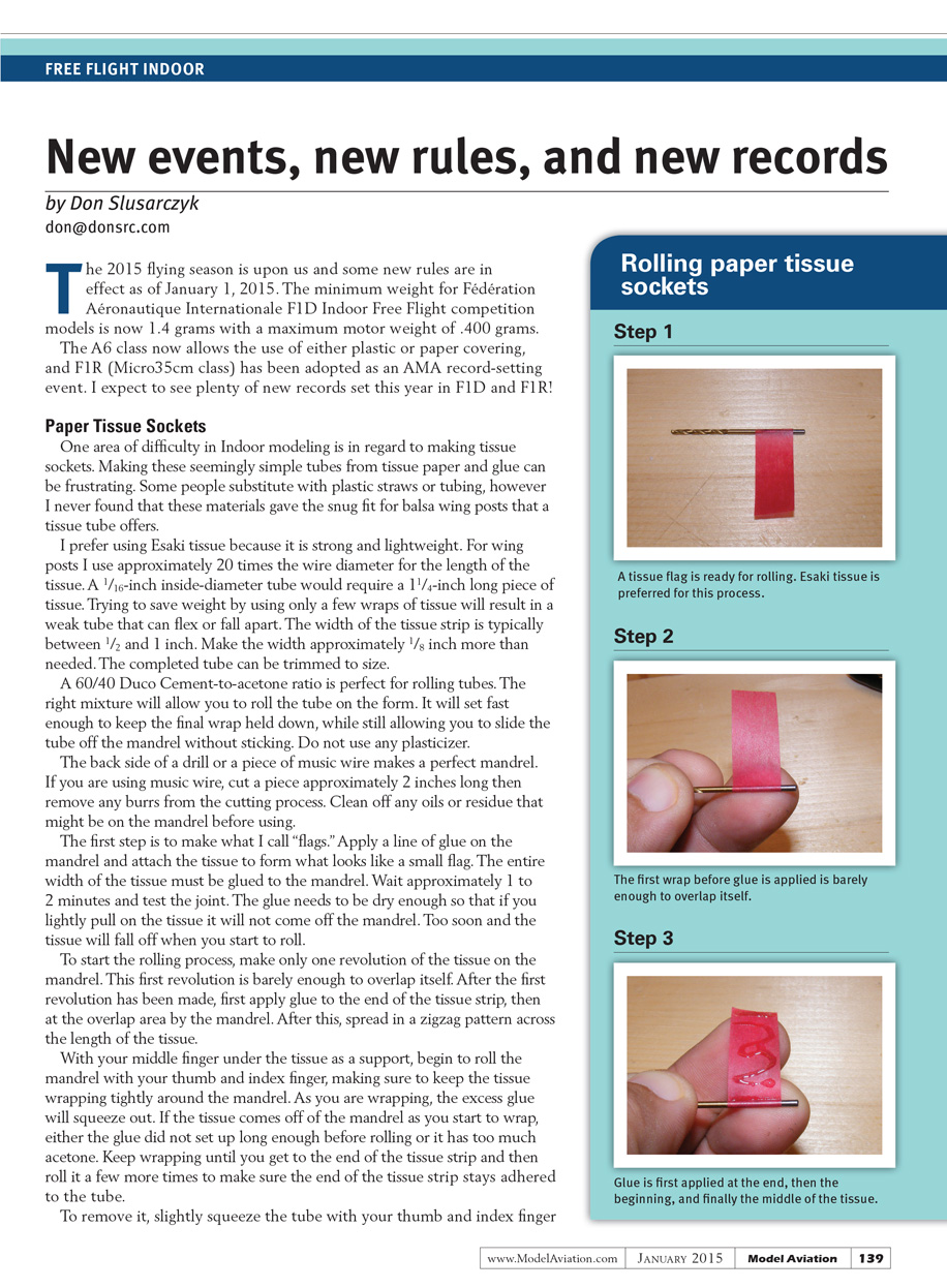 The A6 class now allows the use of either plastic or paper covering and F1R (Micro35cm class) has been adopted as an AMA record-setting event. I expect to see plenty of new records set this year in F1D and F1R!