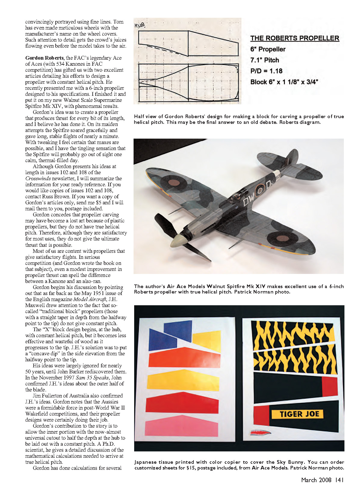 Roberts propeller with true helical pitch. Patrick Norman photo.