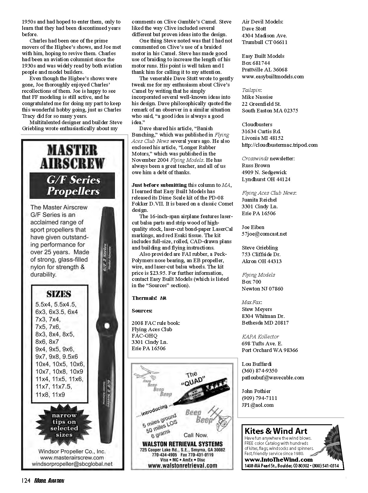various newsletters (e.g., Cloudbusters, Crosswinds, Flying Aces