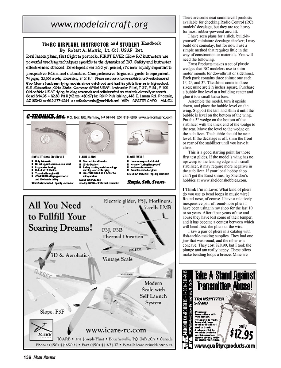 the model flying straight ahead. I placed a 1⁄16-inch balsa shim on the