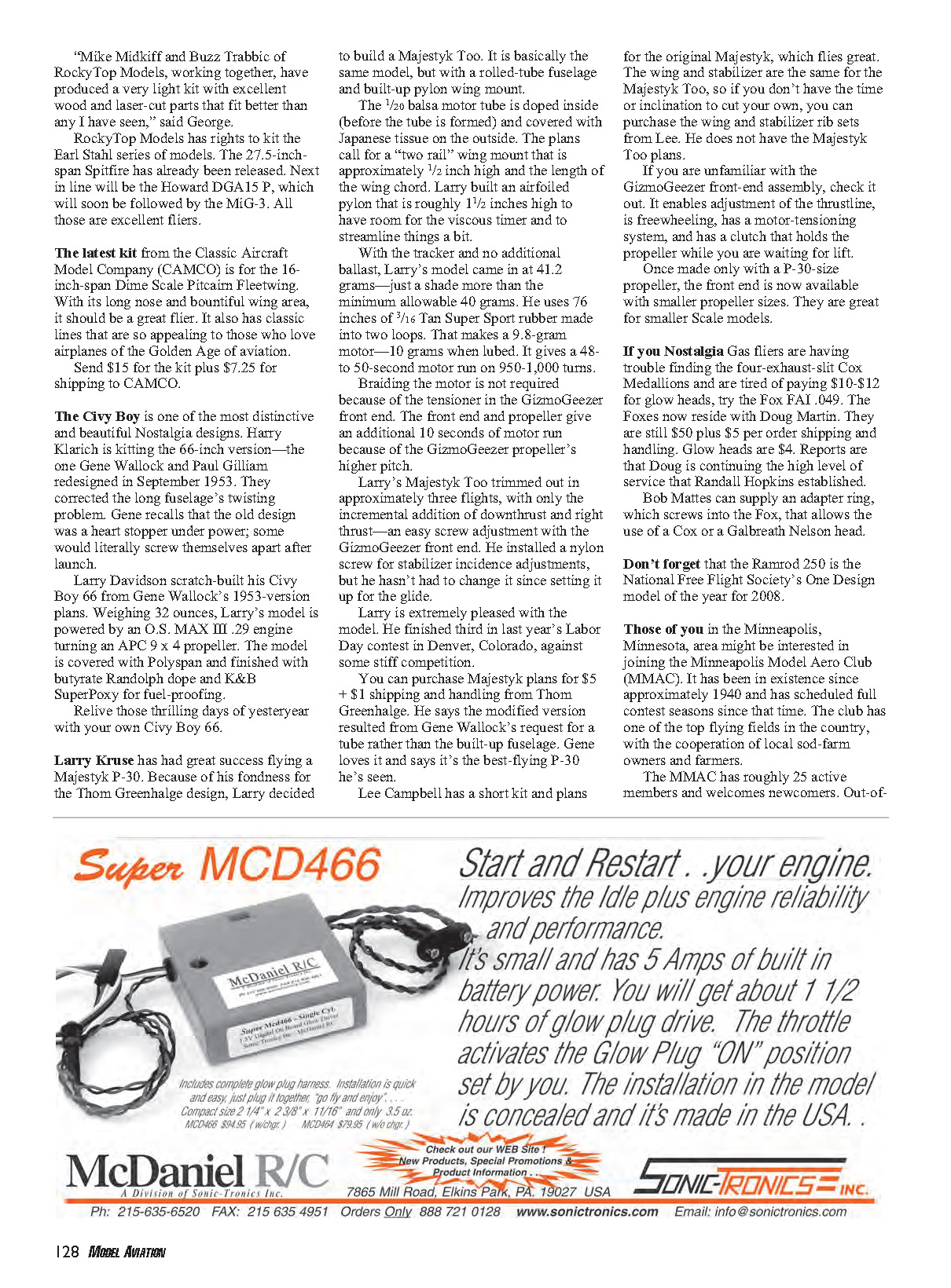 best with a shorter, lower-pitch propeller.“Mike Midkiff and Buzz Trabbic of