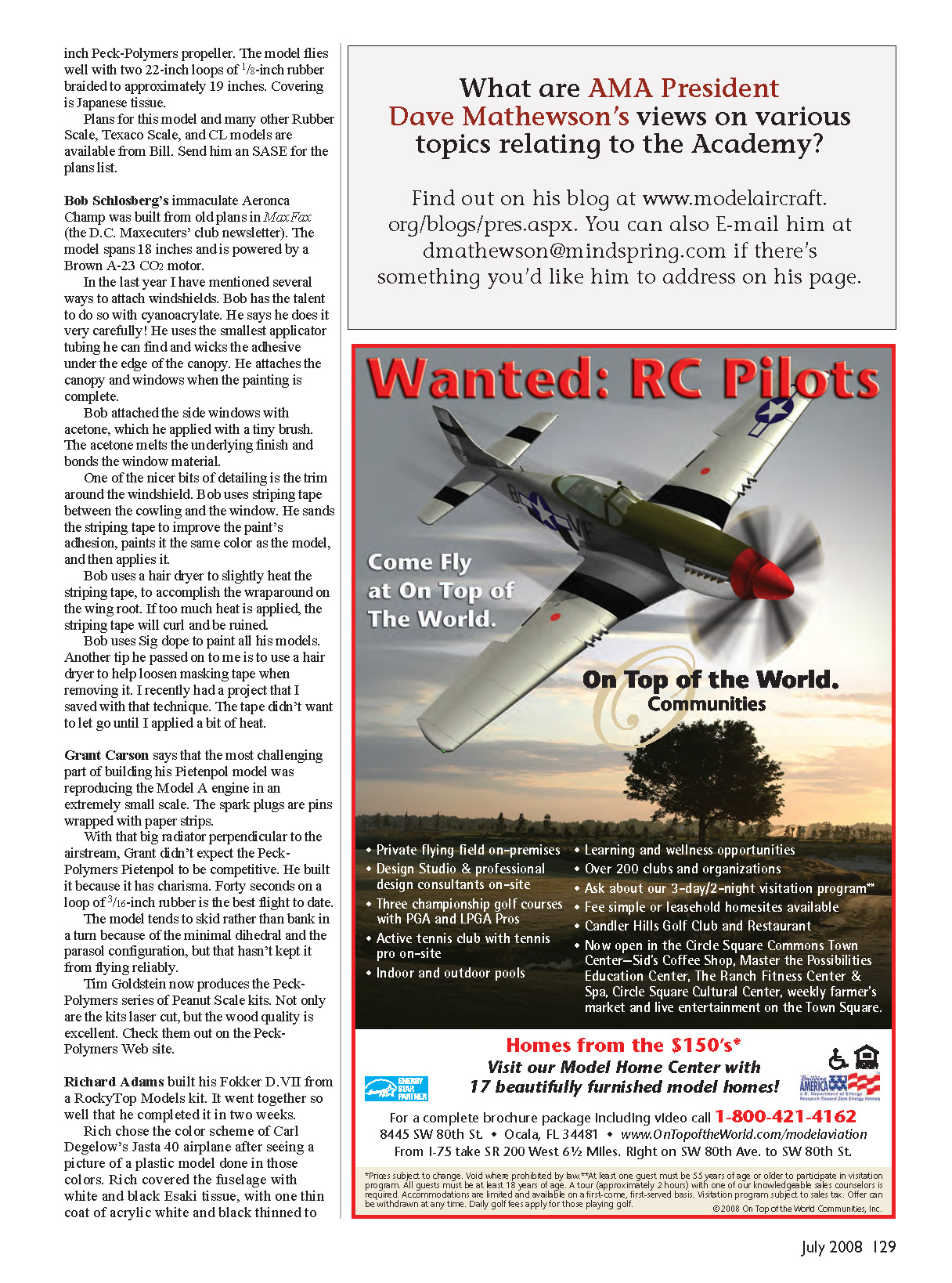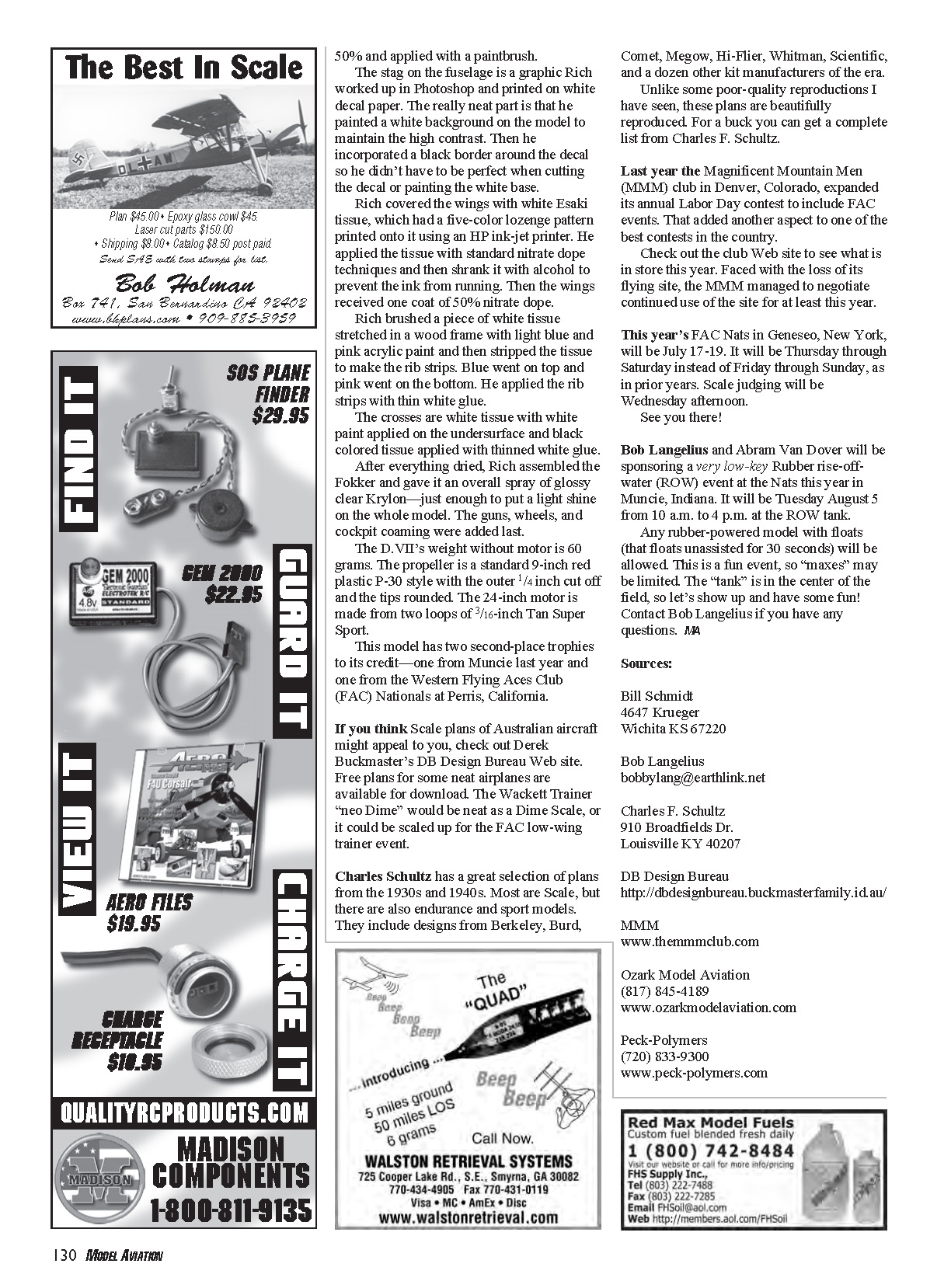 Bill Schmidt produced a beautiful rendition of a 1947 Bellanca Cruisair. The 27-inchwingspan