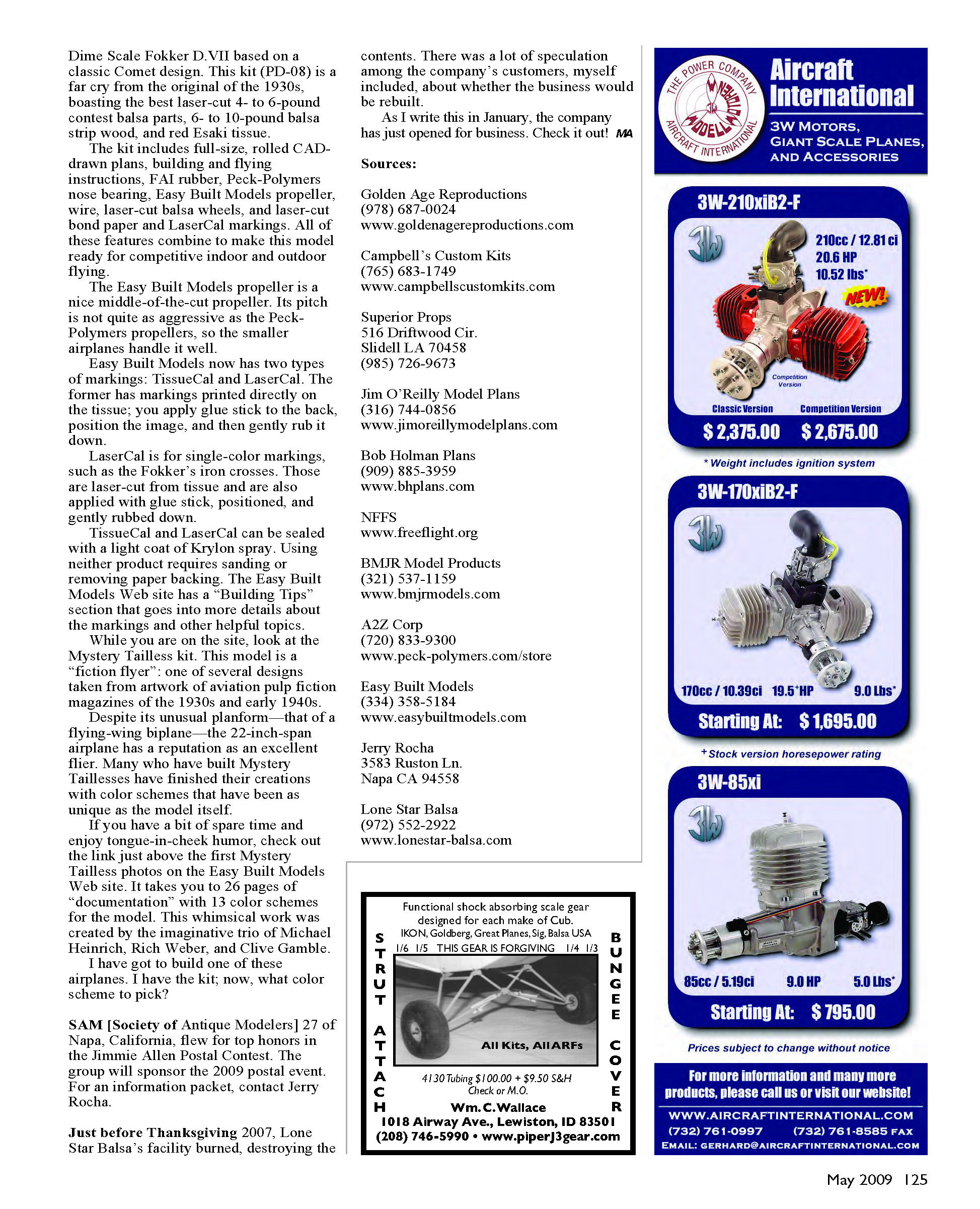 thrust, 1/8 inch of washout in each wingtip, and 1/8 inch of washin of