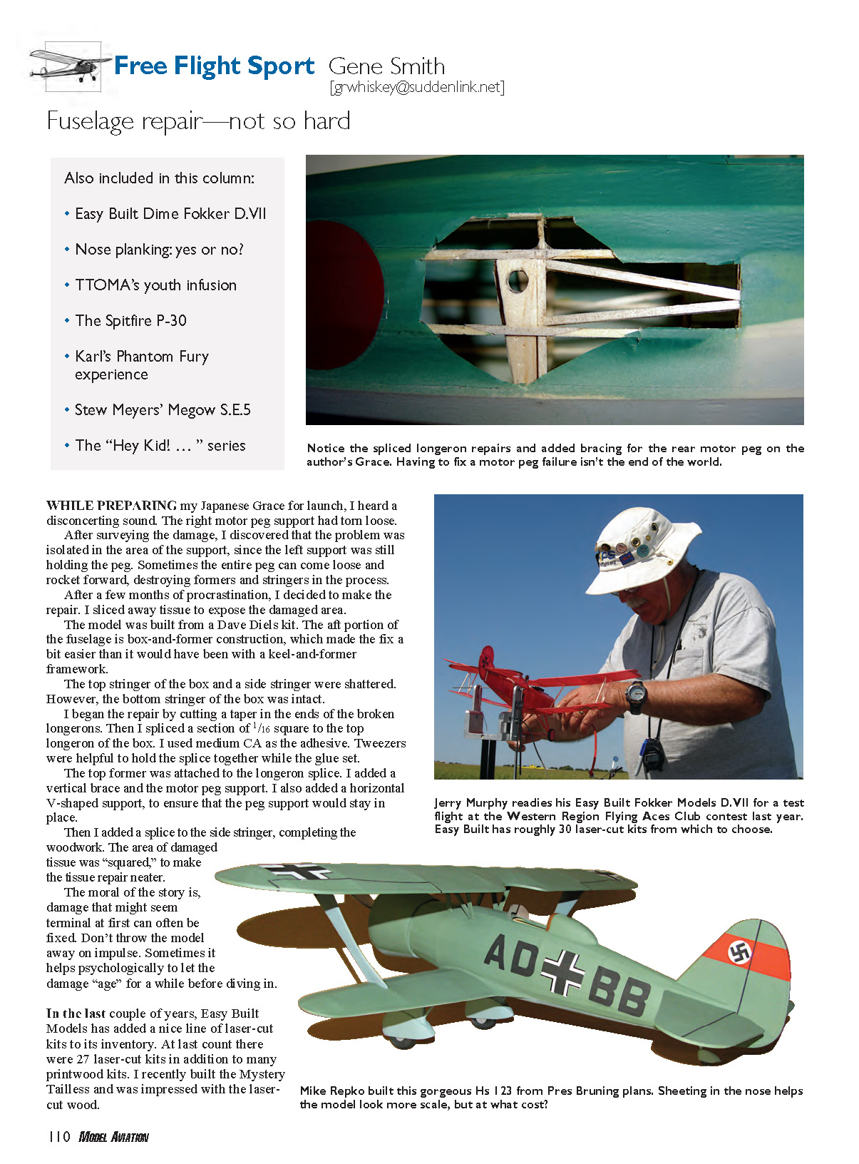 Notice the spliced longeron repairs and added bracing for the rear motor peg on the