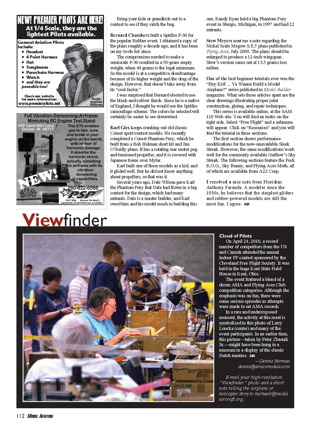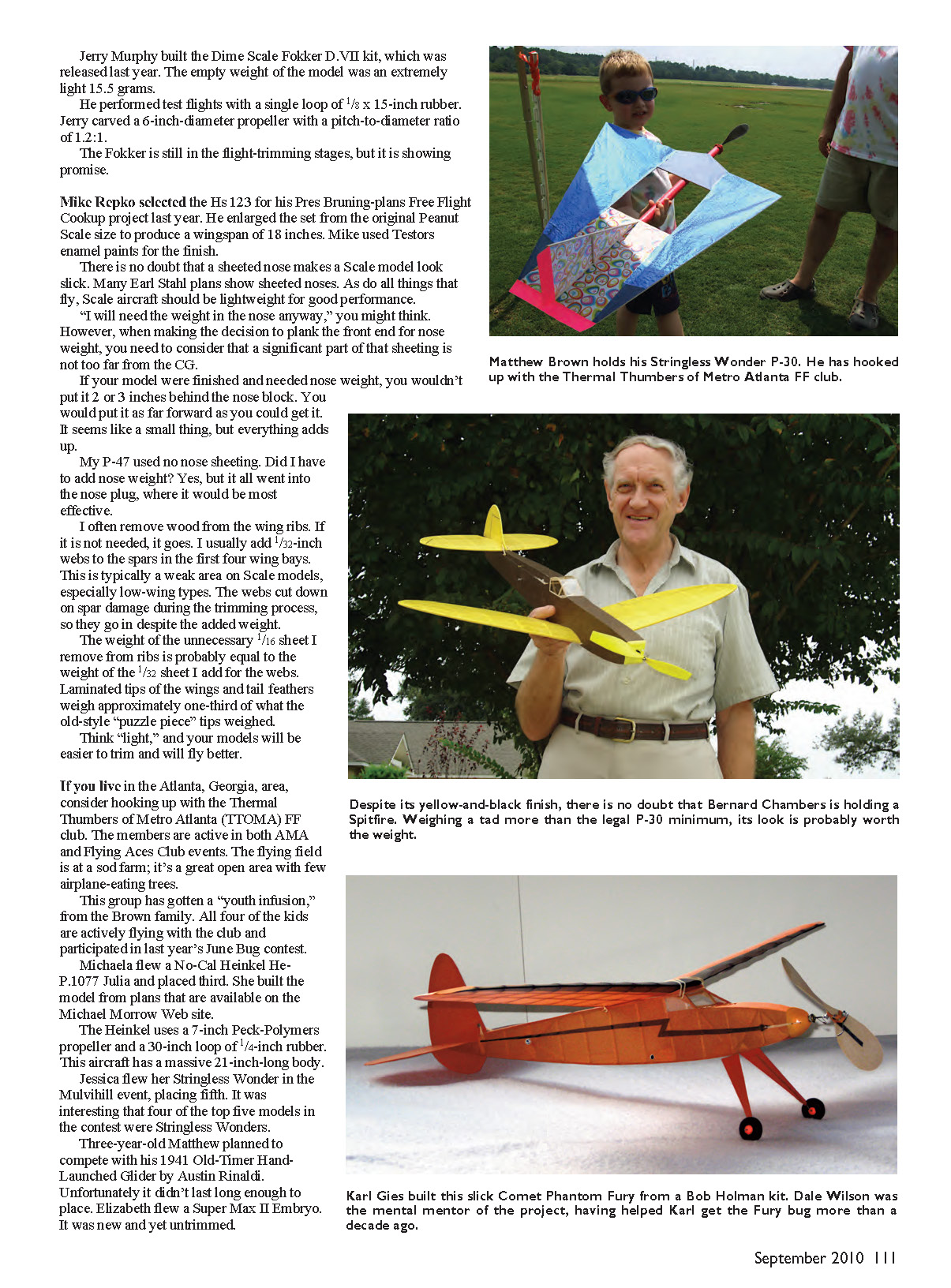 He performed test flights with a single loop of 1/8 x 15-inch rubber.