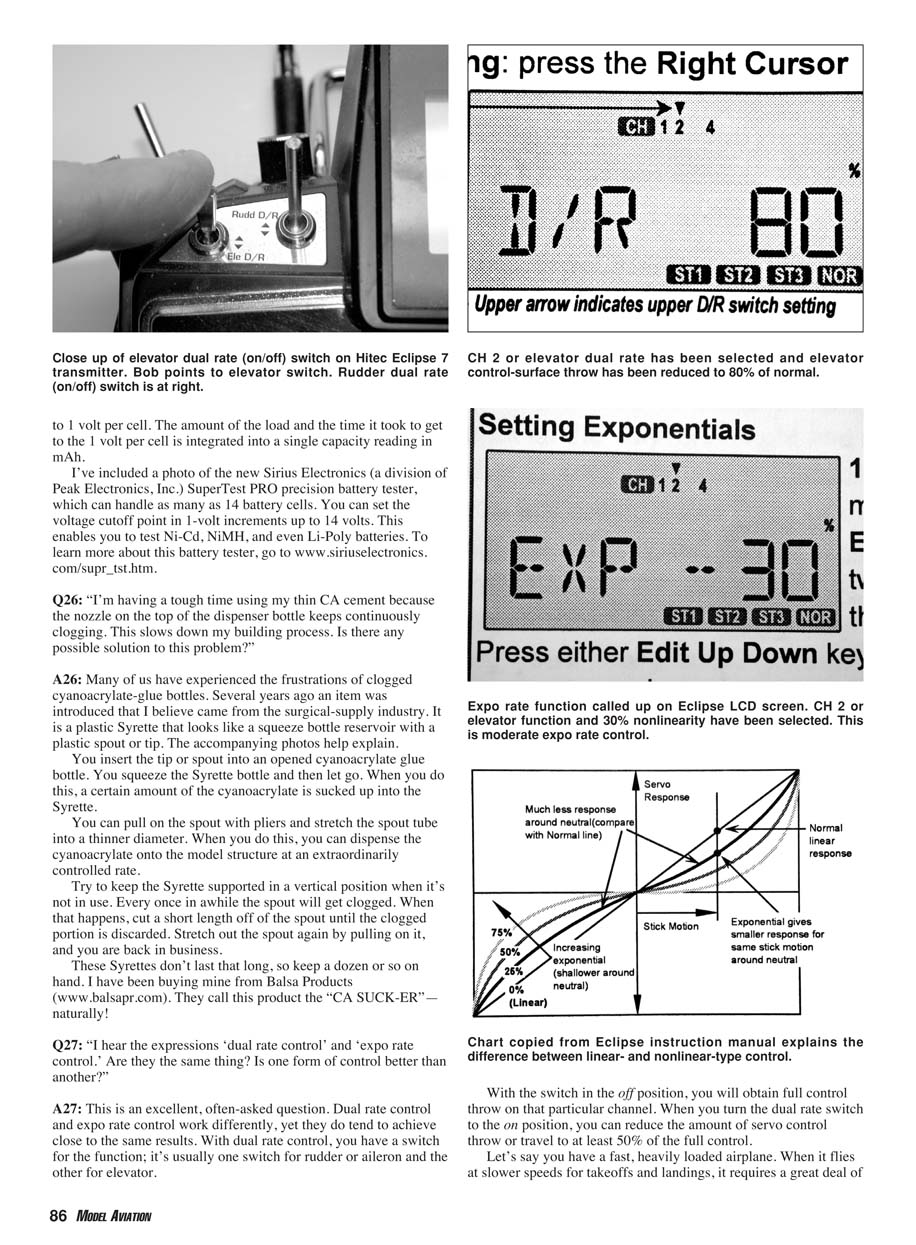 transmitter. Bob points to elevator switch. Rudder dual rate