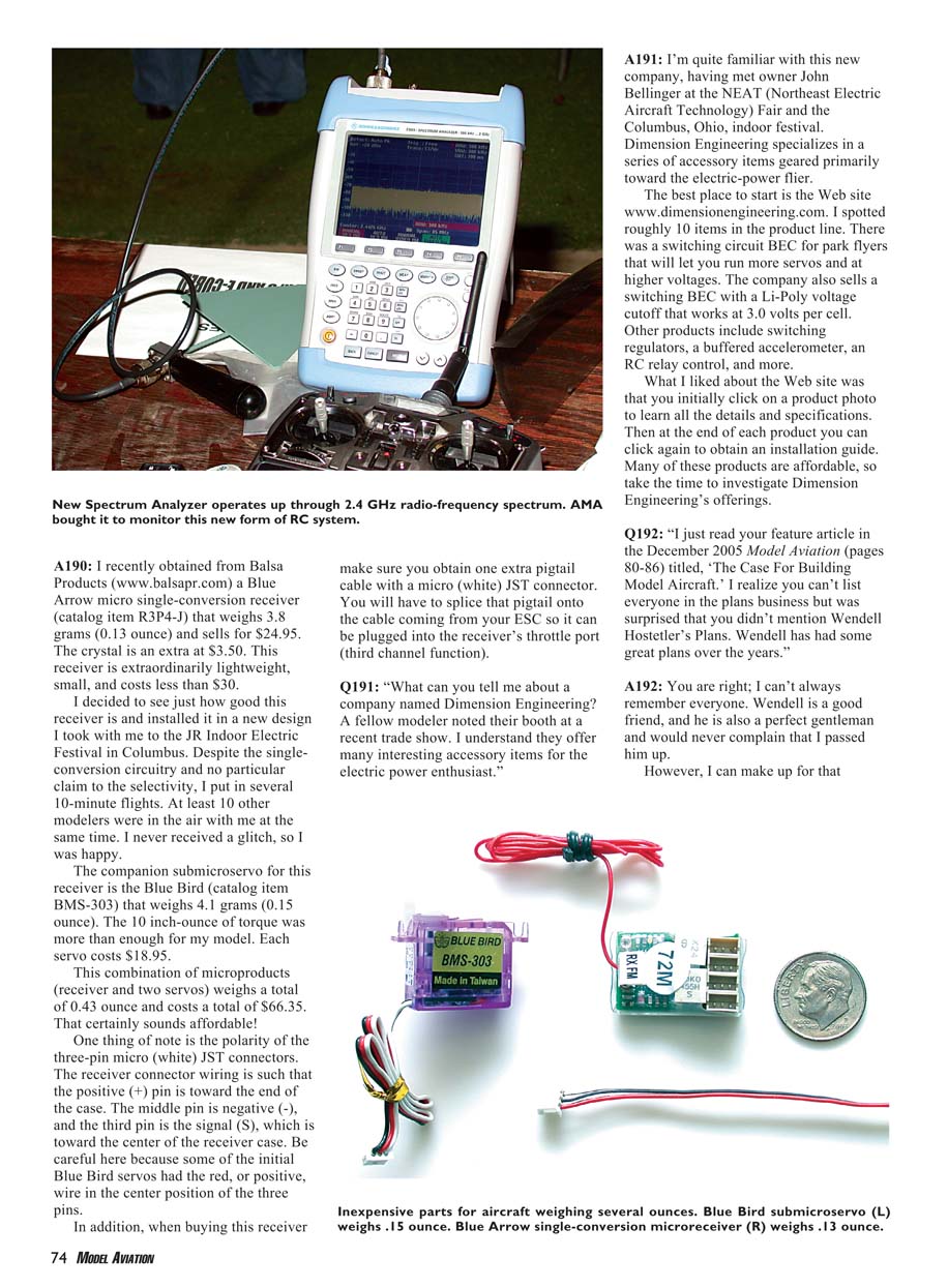 weighs .15 ounce. Blue Arrow single-conversion microreceiver (R) weighs .13 ounce.