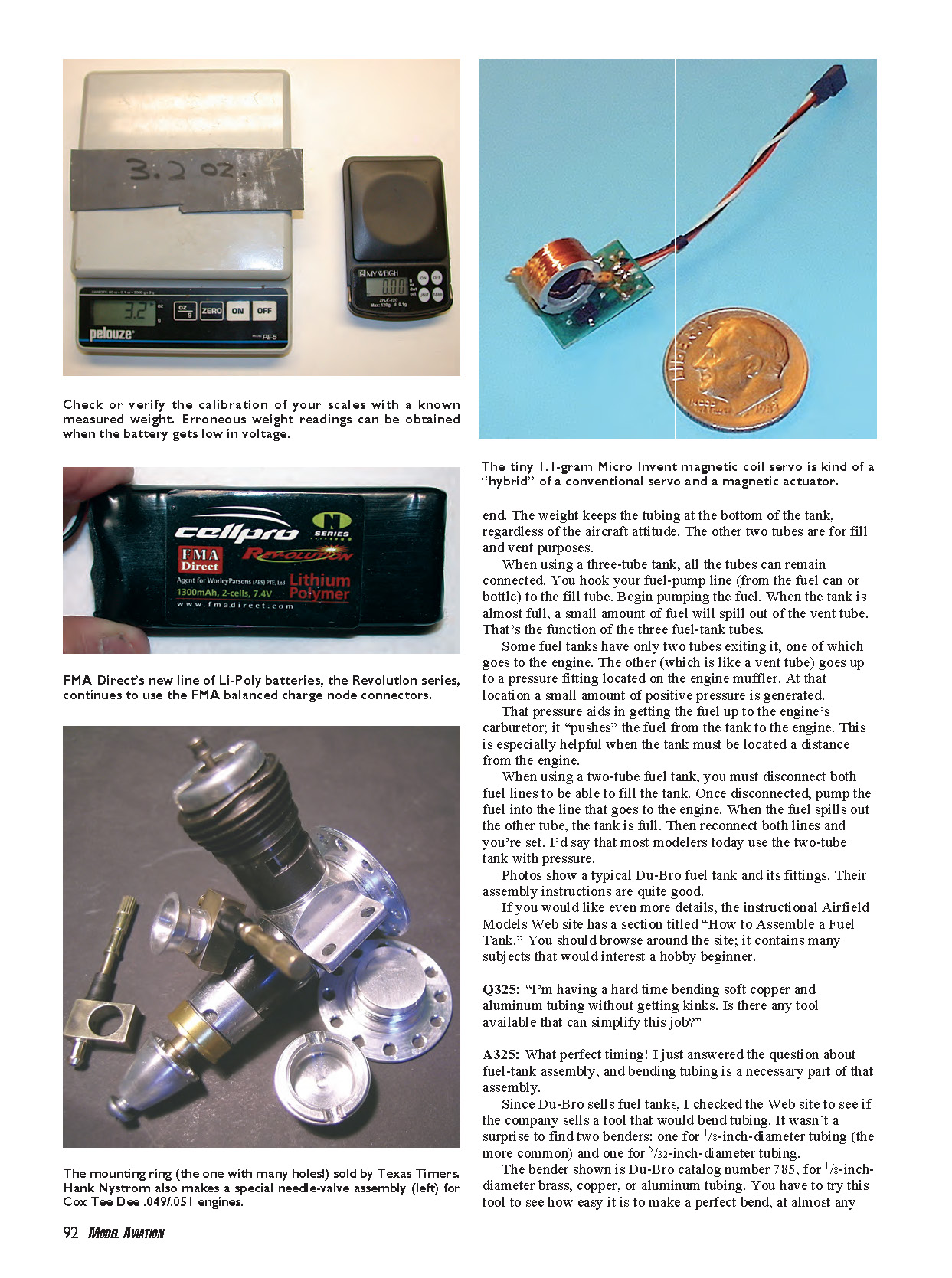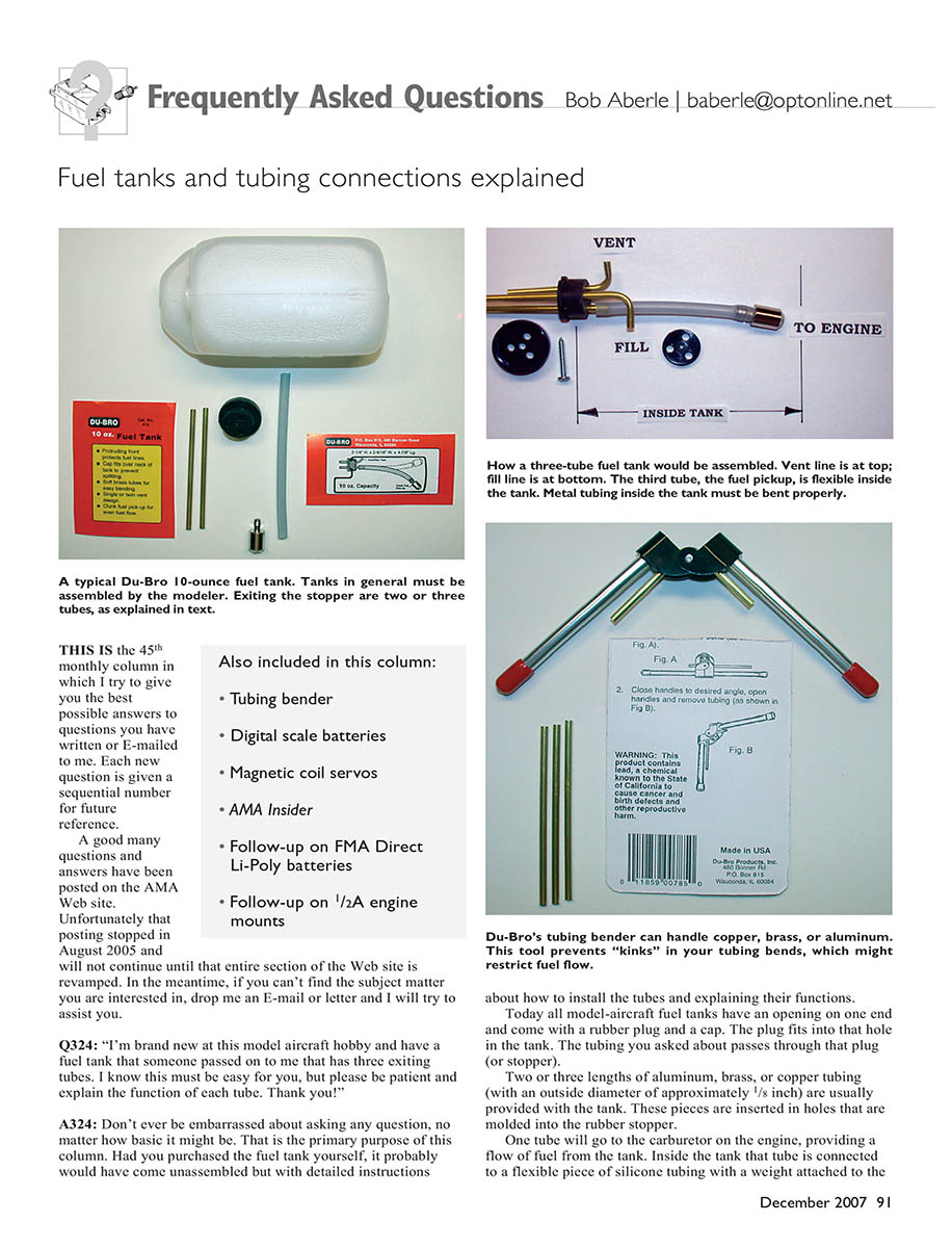 Photos show a typical Du-Bro fuel tank and its fittings. Their