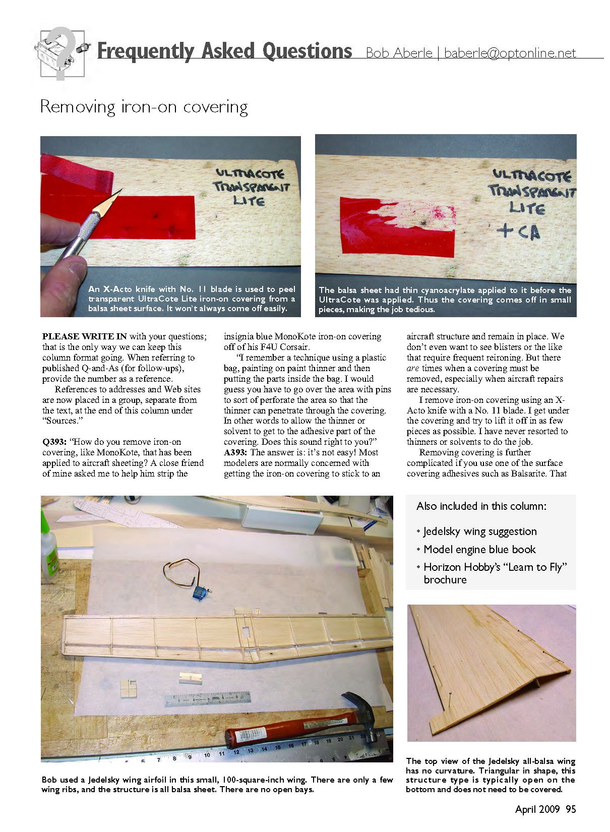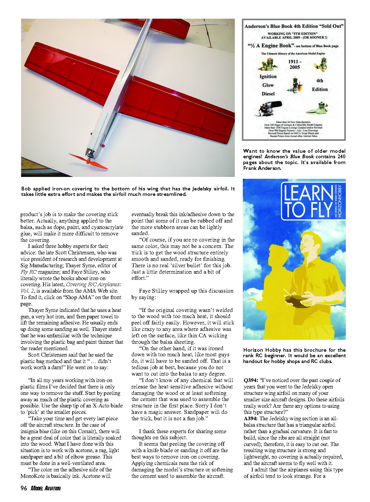 Bob used a Jedelsky wing airfoil in this small, 100-square-inch wing. There are only a few