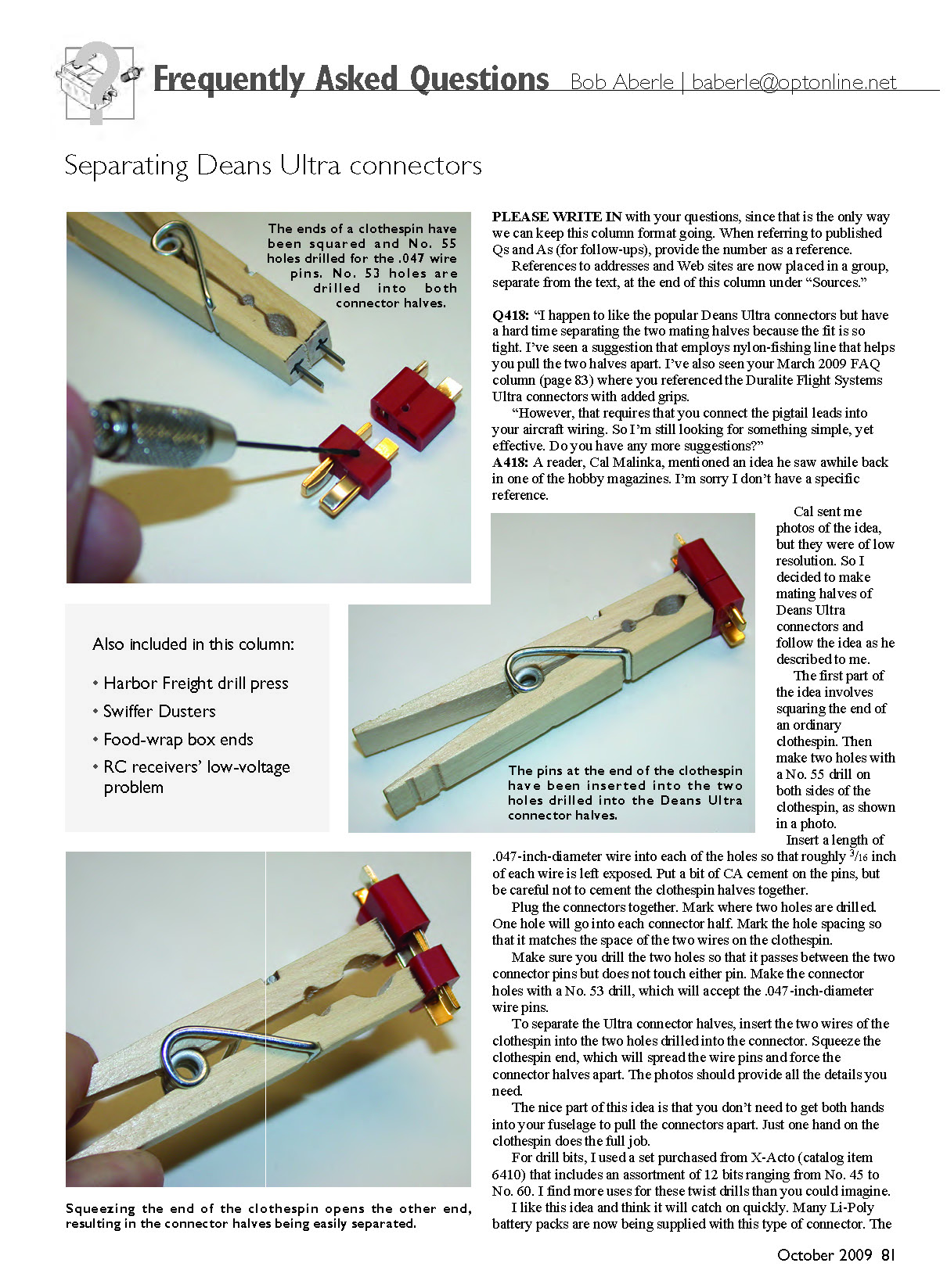 A418: A reader, Cal Malinka, mentioned an idea he saw awhile back