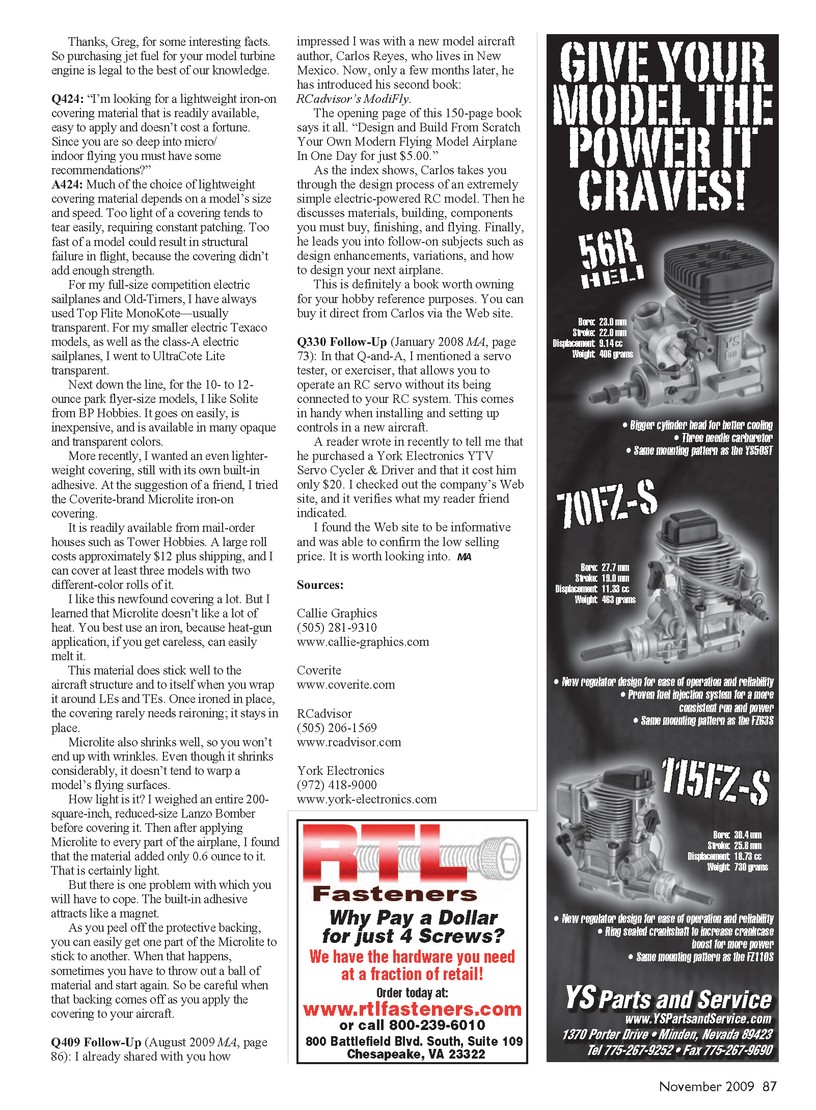 Bob used Coverite Microlite iron-on covering on a small, lightweight model and thinks it