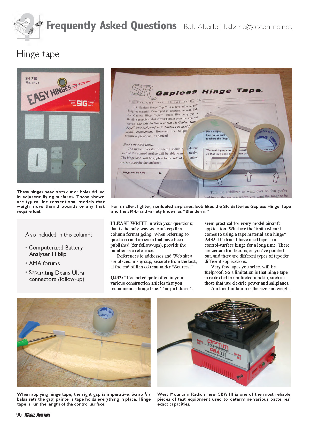 Gapless Hinge Tape, supplied by Larry Sribnick of SR Batteries Inc.