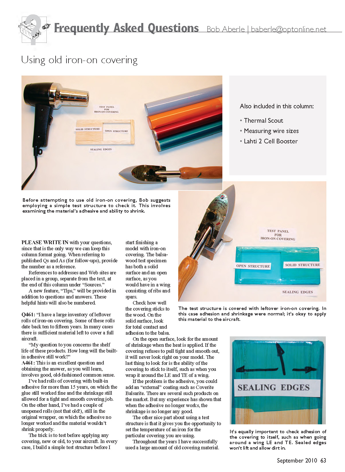 Before attempting to use old iron-on covering, Bob suggests