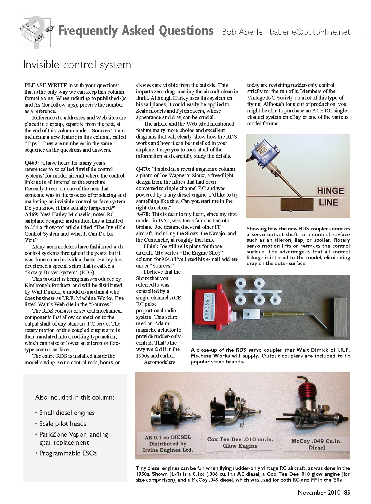 Tiny diesel engines can be fun when flying rudder-only vintage RC aircraft, as was done in the