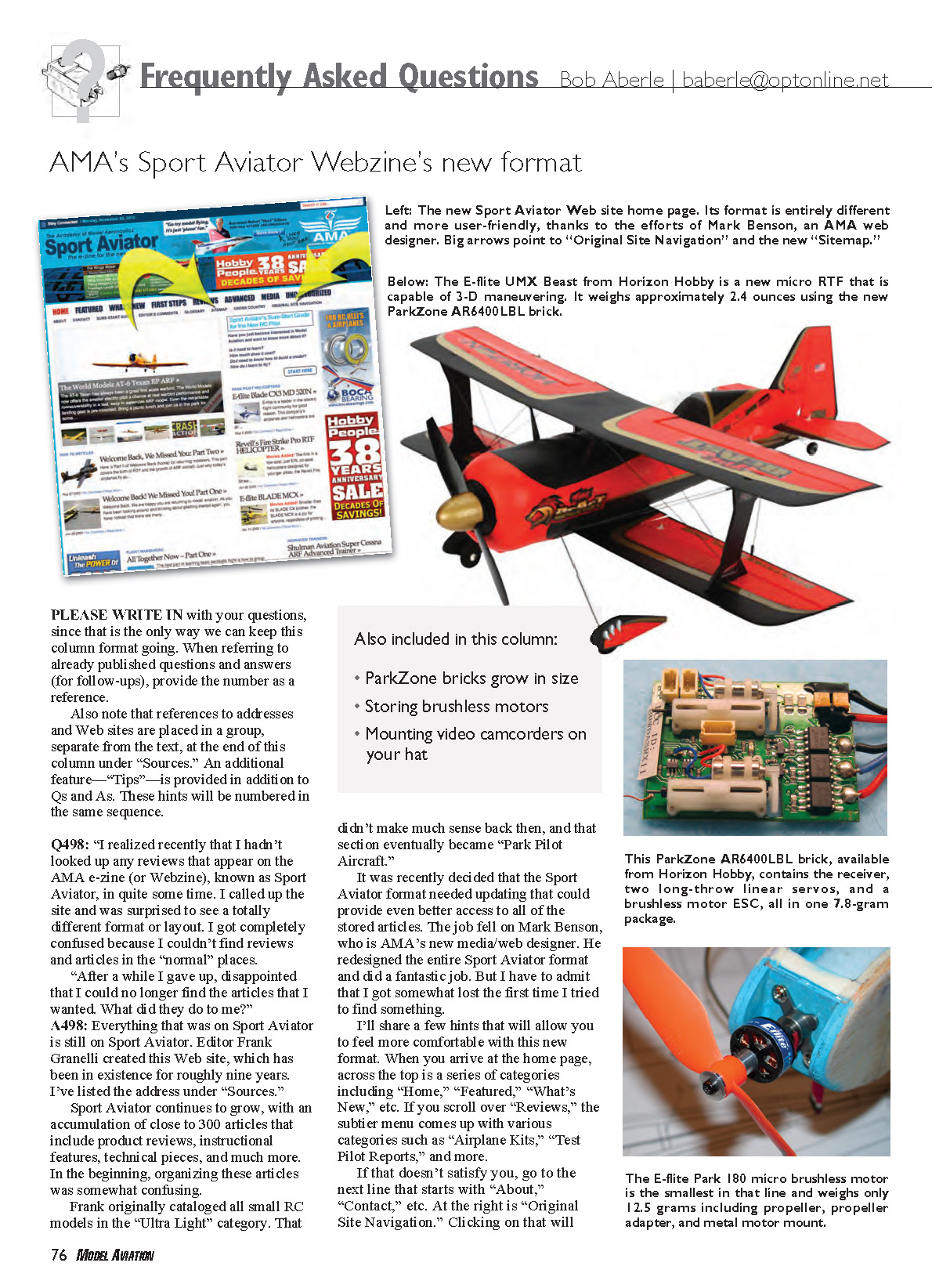 Left: The new Sport Aviator Web site home page. Its format is entirely different
