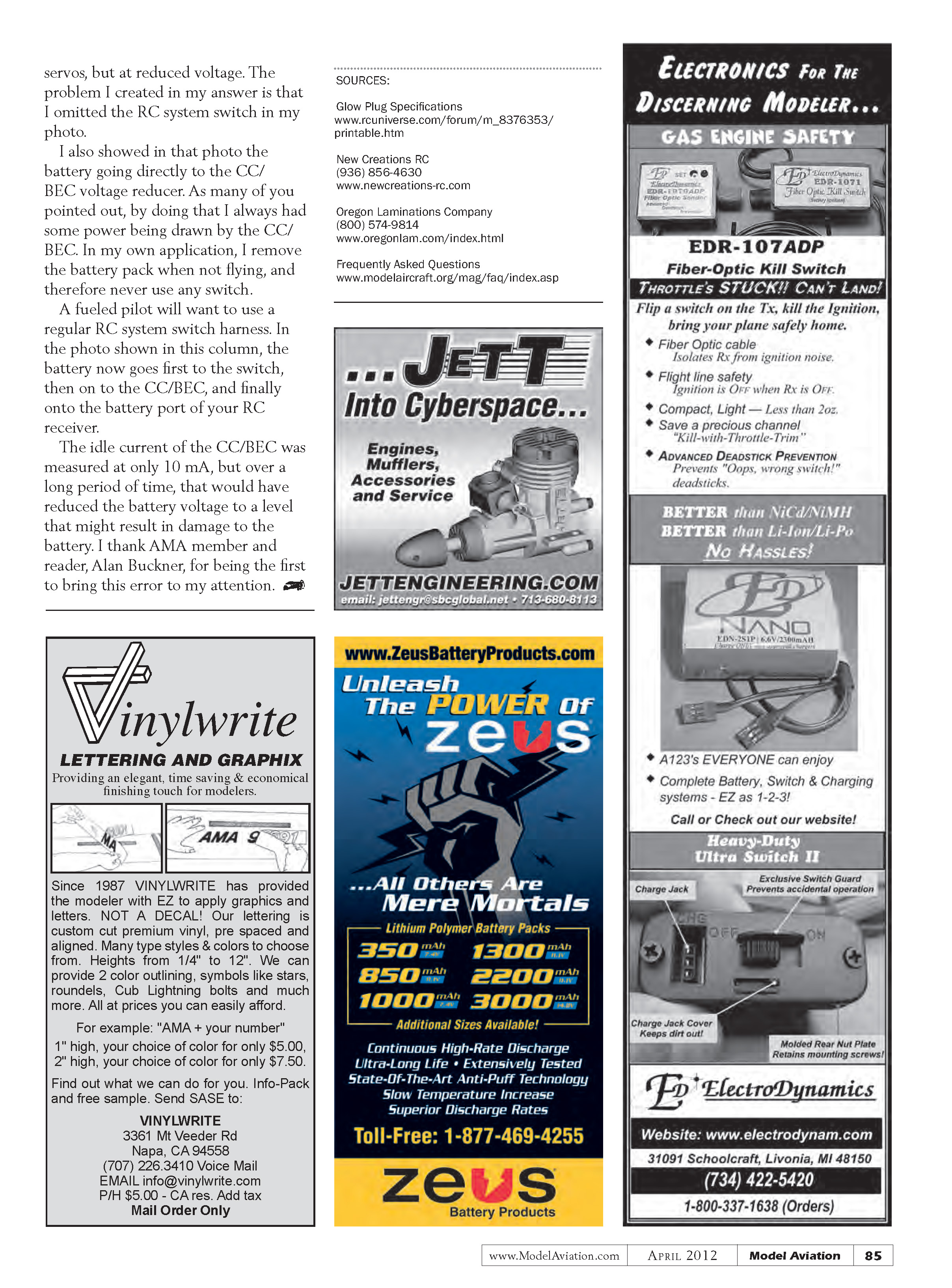 published issue of Model Aviation will