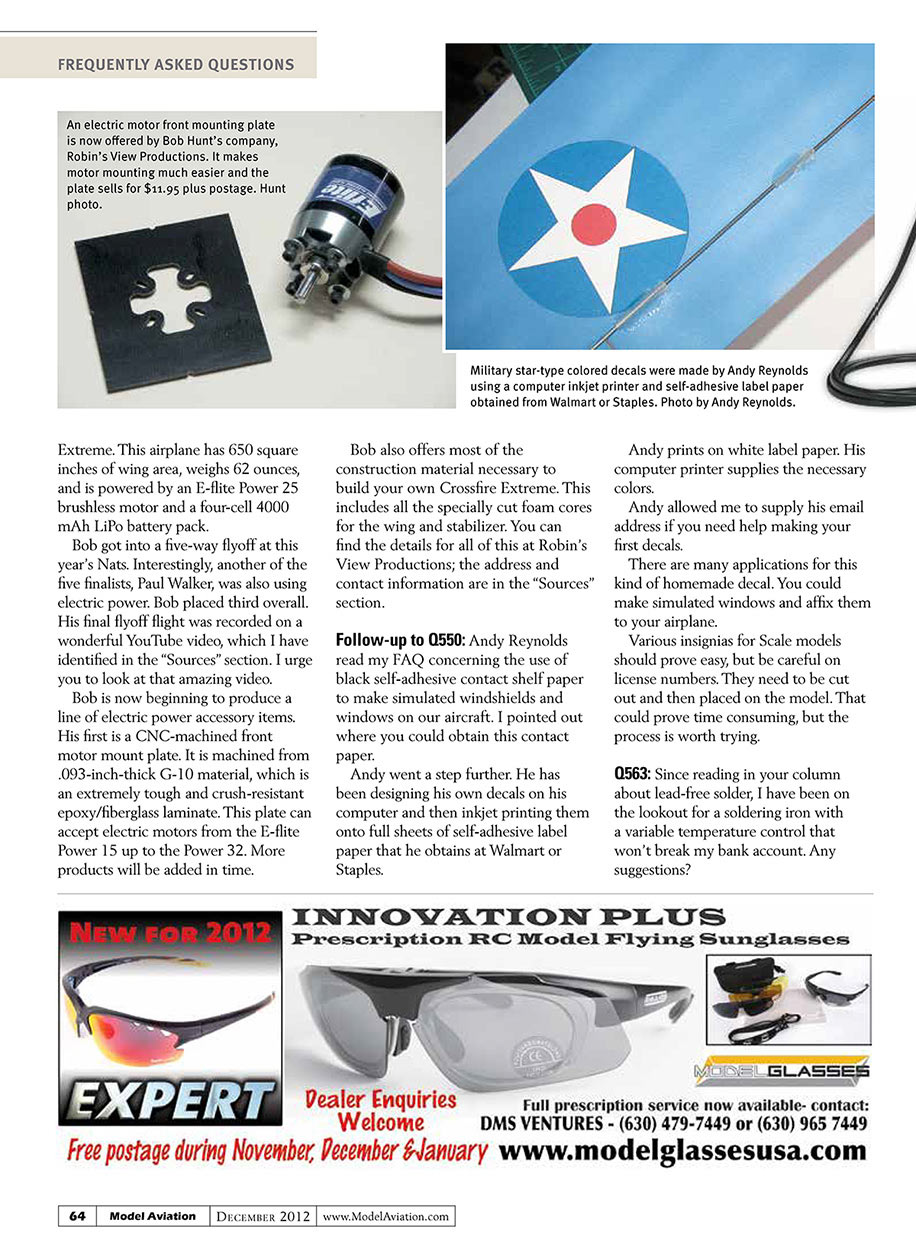 published issue of Model Aviation and will give them the
