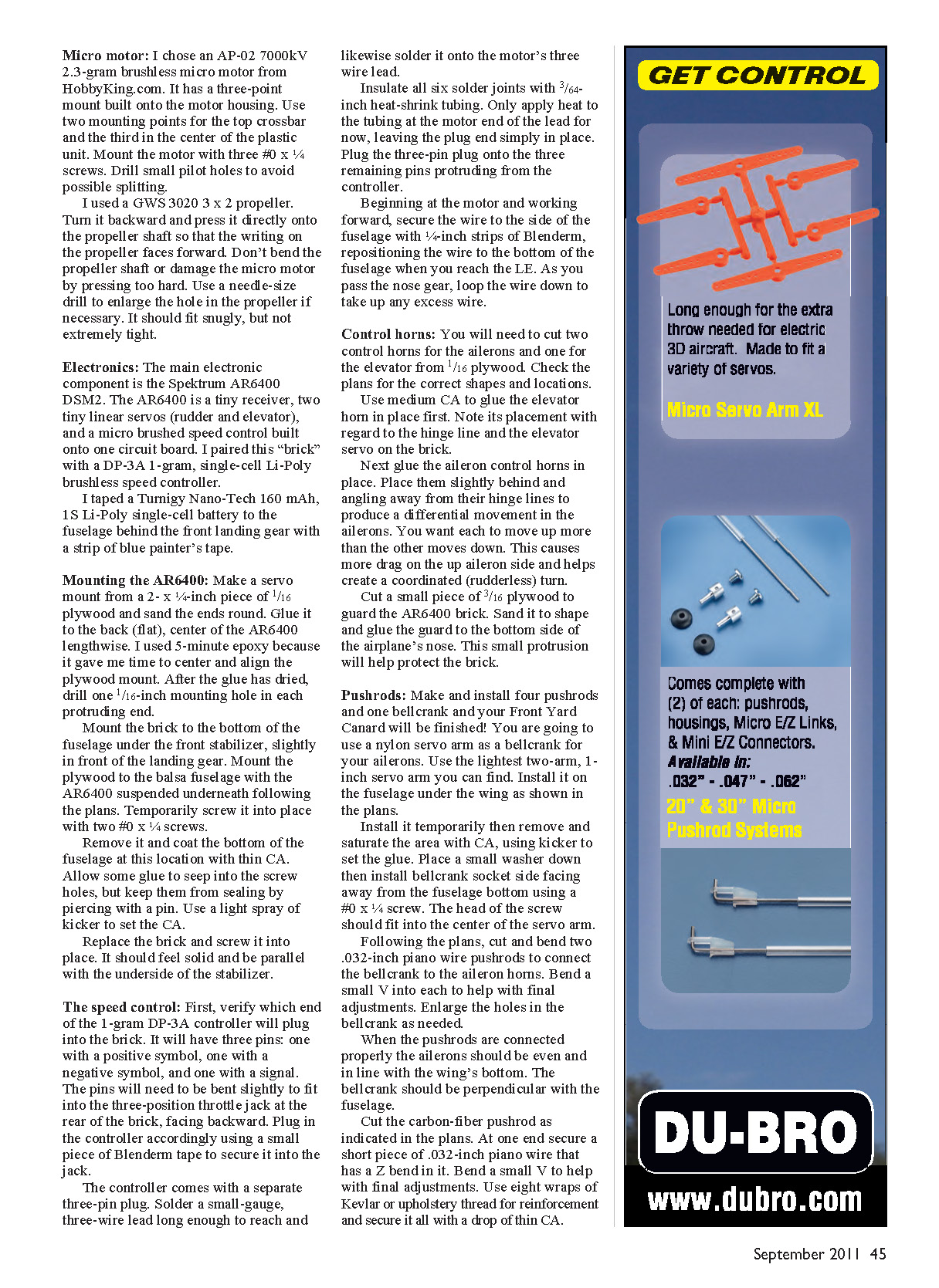 music wire pushrods, and 1/16 plywood