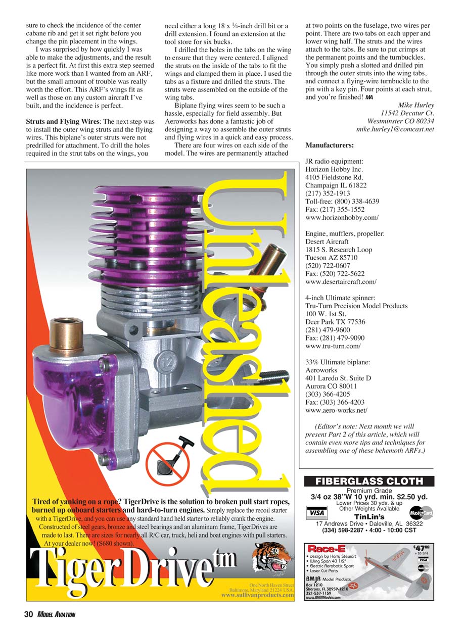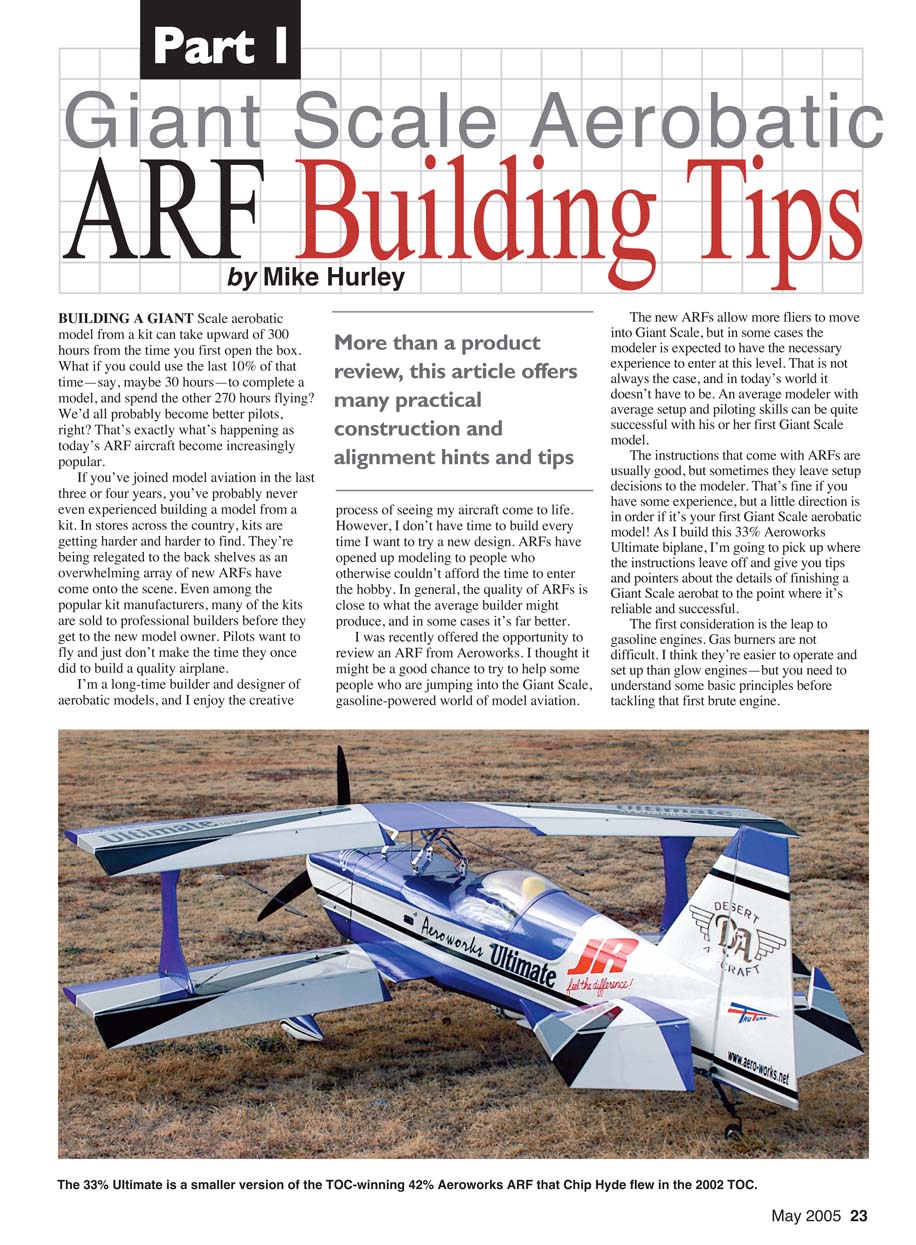 The 33% Ultimate is a smaller version of the TOC-winning 42% Aeroworks ARF that Chip Hyde flew in the 2002 TOC.