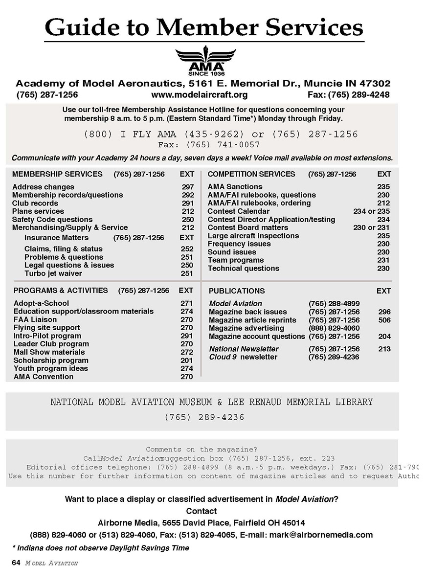 (765) 287-1256 www.modelaircraft.org Fax: (765) 289-4248