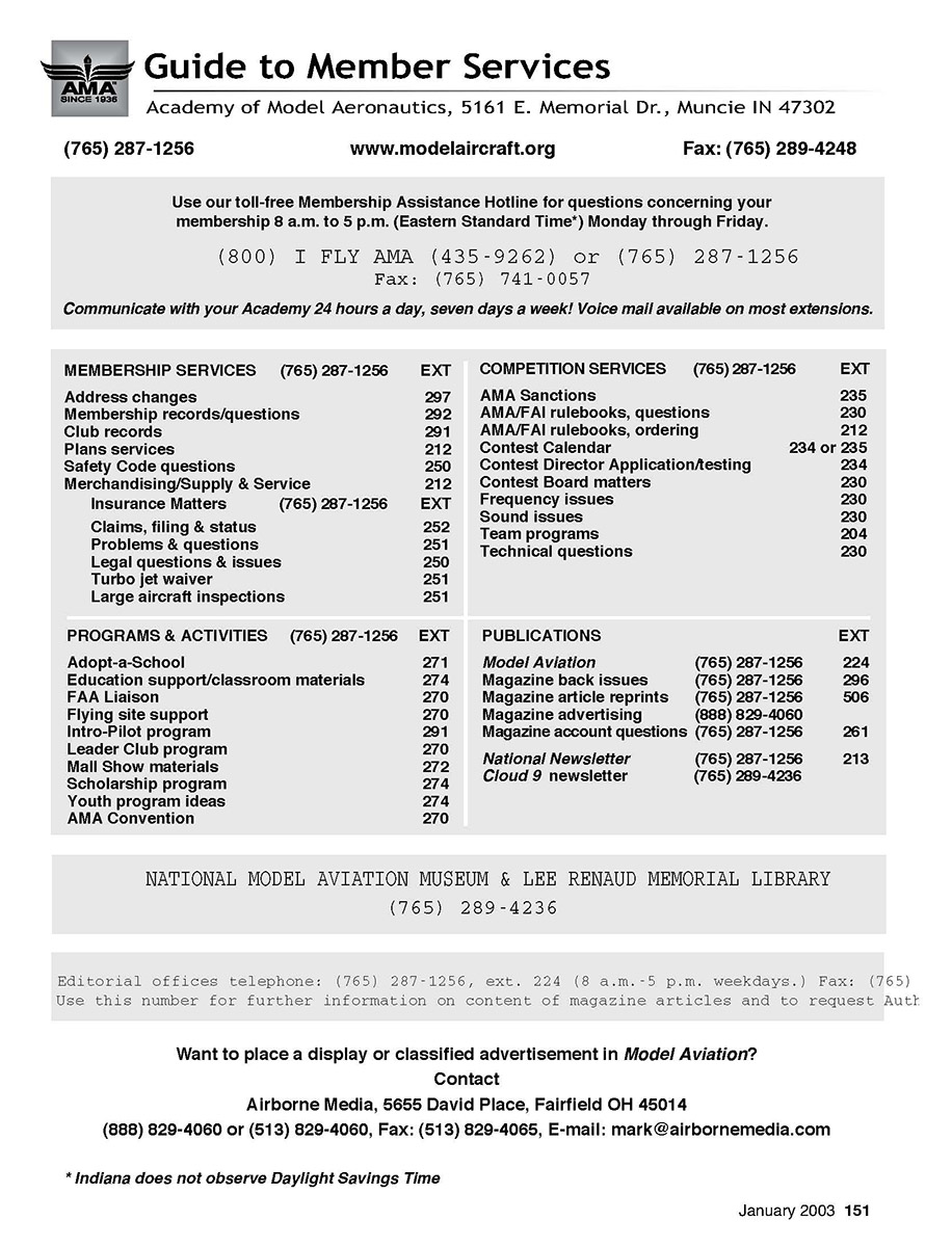 (765) 287-1256 www.modelaircraft.org Fax: (765) 289-4248