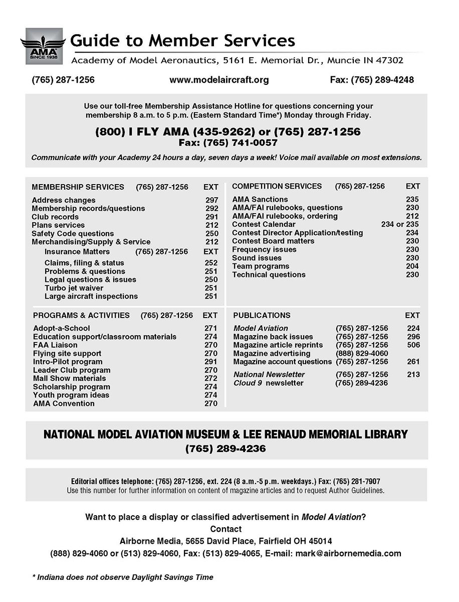 (765) 287-1256 www.modelaircraft.org Fax: (765) 289-4248