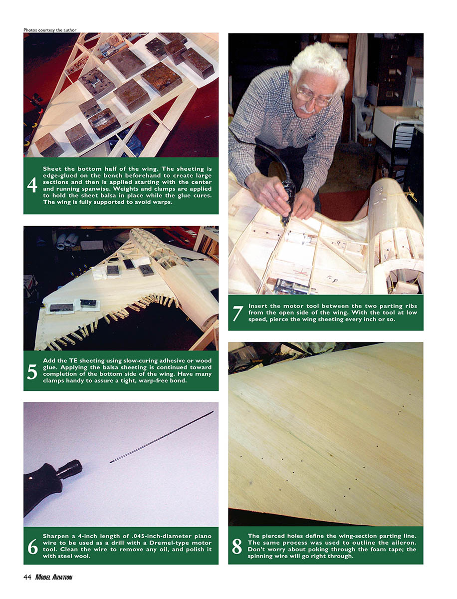 glue. Applying the balsa sheeting is continued toward