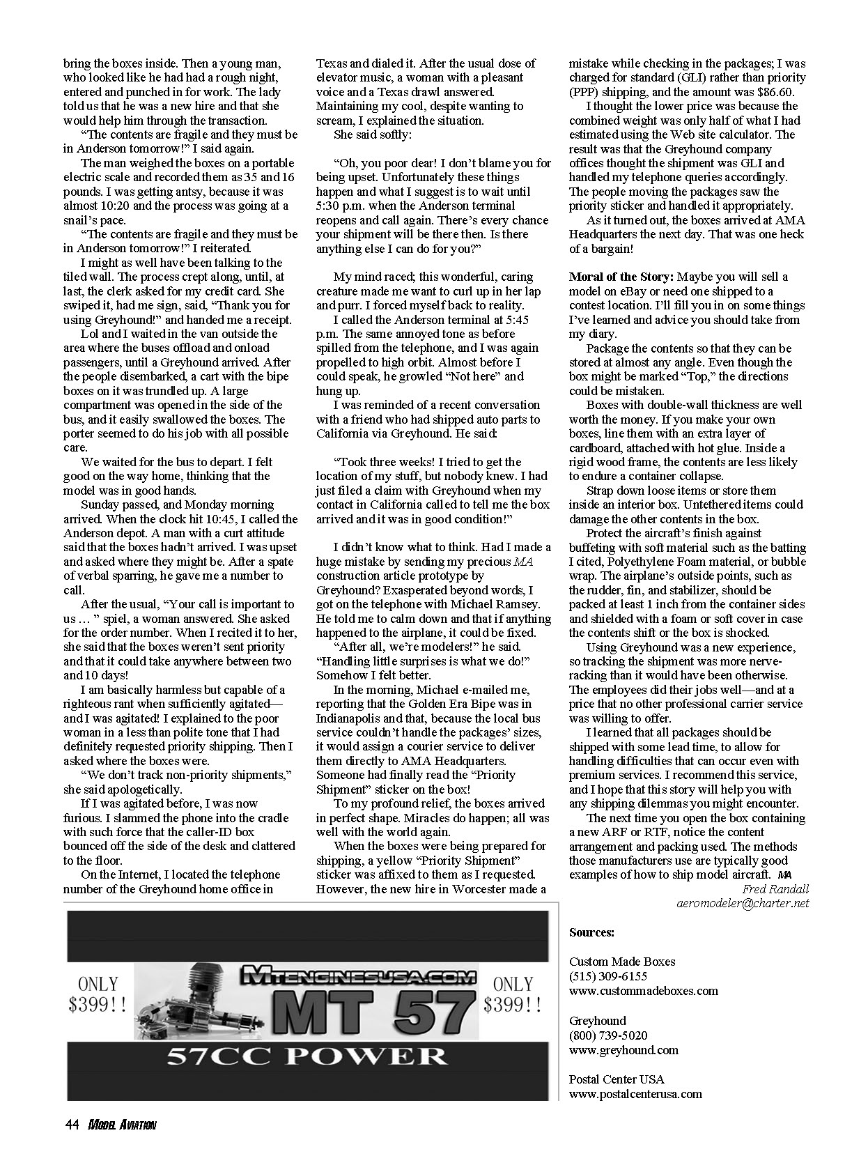 examples of how to ship model aircraft. MA