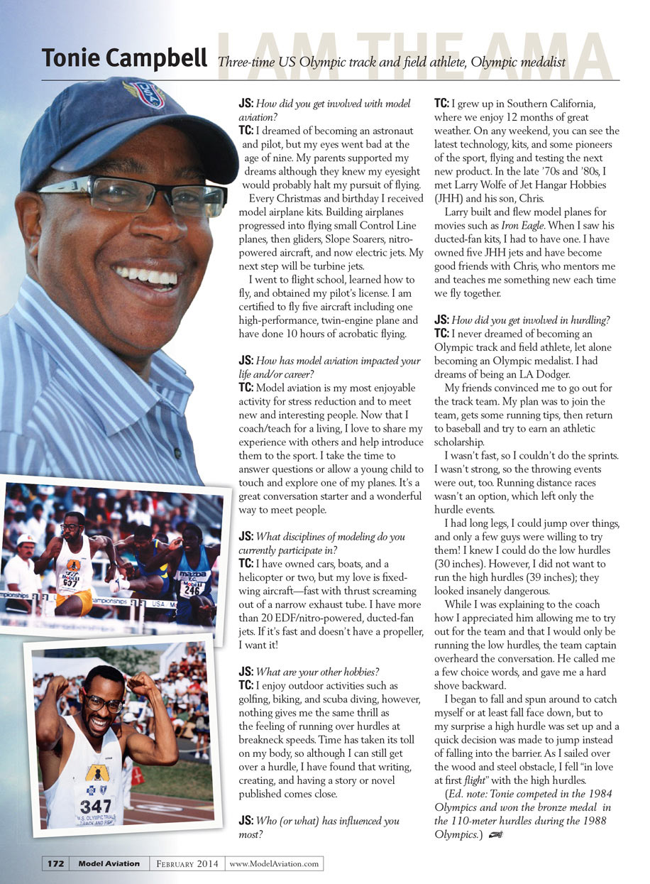 TC: Model aviation is by far my most enjoyable activity for stress reduction and to meet new and interesting people. Now that I’m not an athlete and I coach/teach for a living, I love to share my experience with others and help introduce them to the sport. I take the time to answer questions or allow a young child to touch and explore one of my planes. It’s a great conversation starter and wonderful way to meet people.