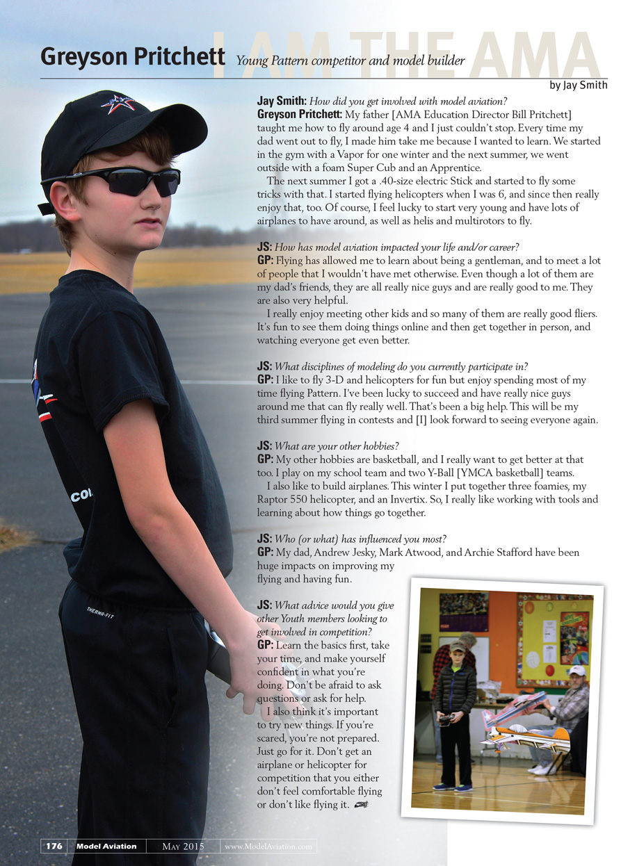 Greyson Pritchett: My father taught me how to fly around 4 and I just couldn’t stop. Every time my dad went out to fly, I made him take me because I wanted to learn. We started in the gym with a Vapor for one winter and the next summer we went outside with a foam Super Cub and an Apprentice.
