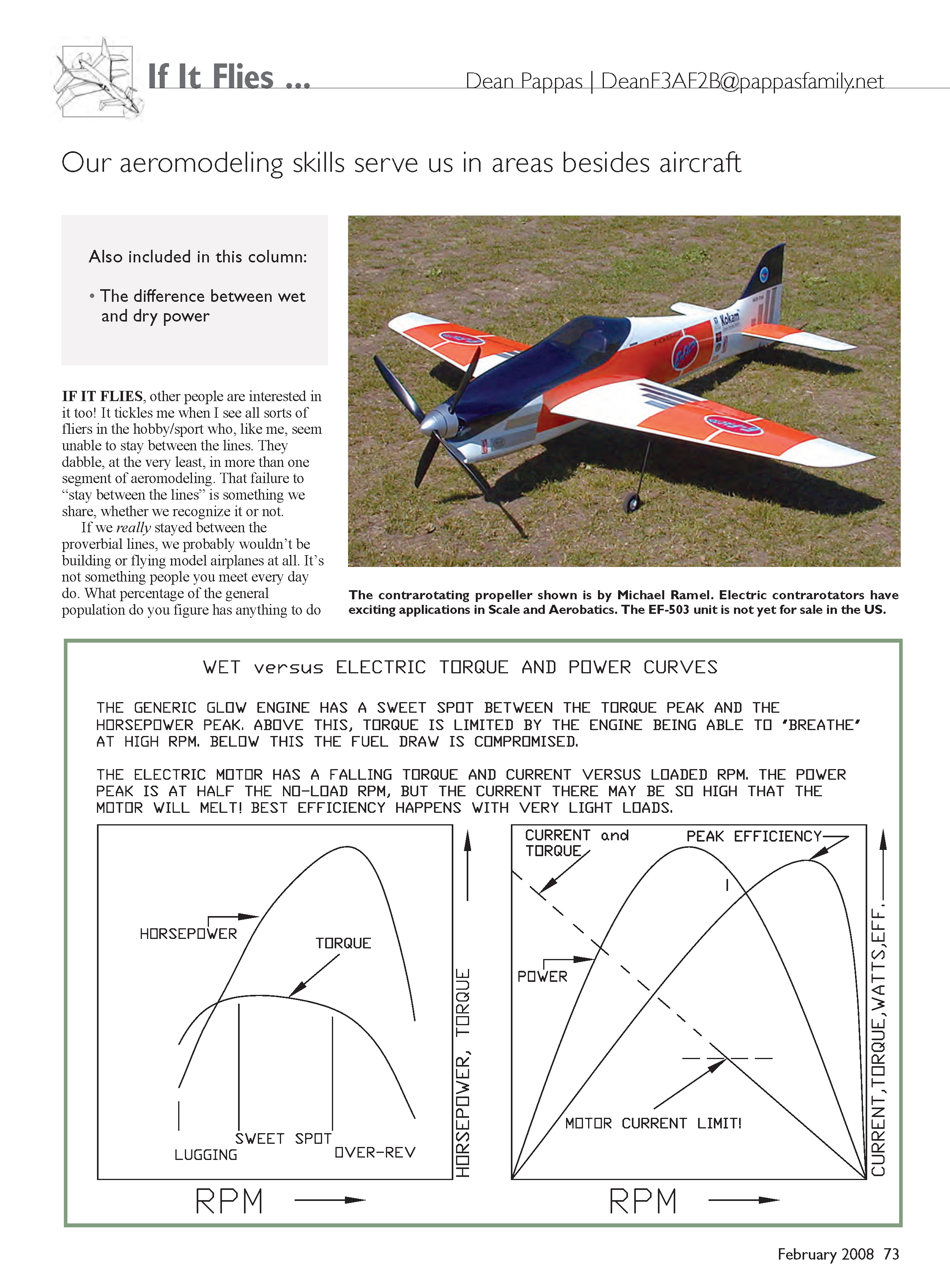 The contrarotating propeller shown is by Michael Ramel. Electric contrarotators have