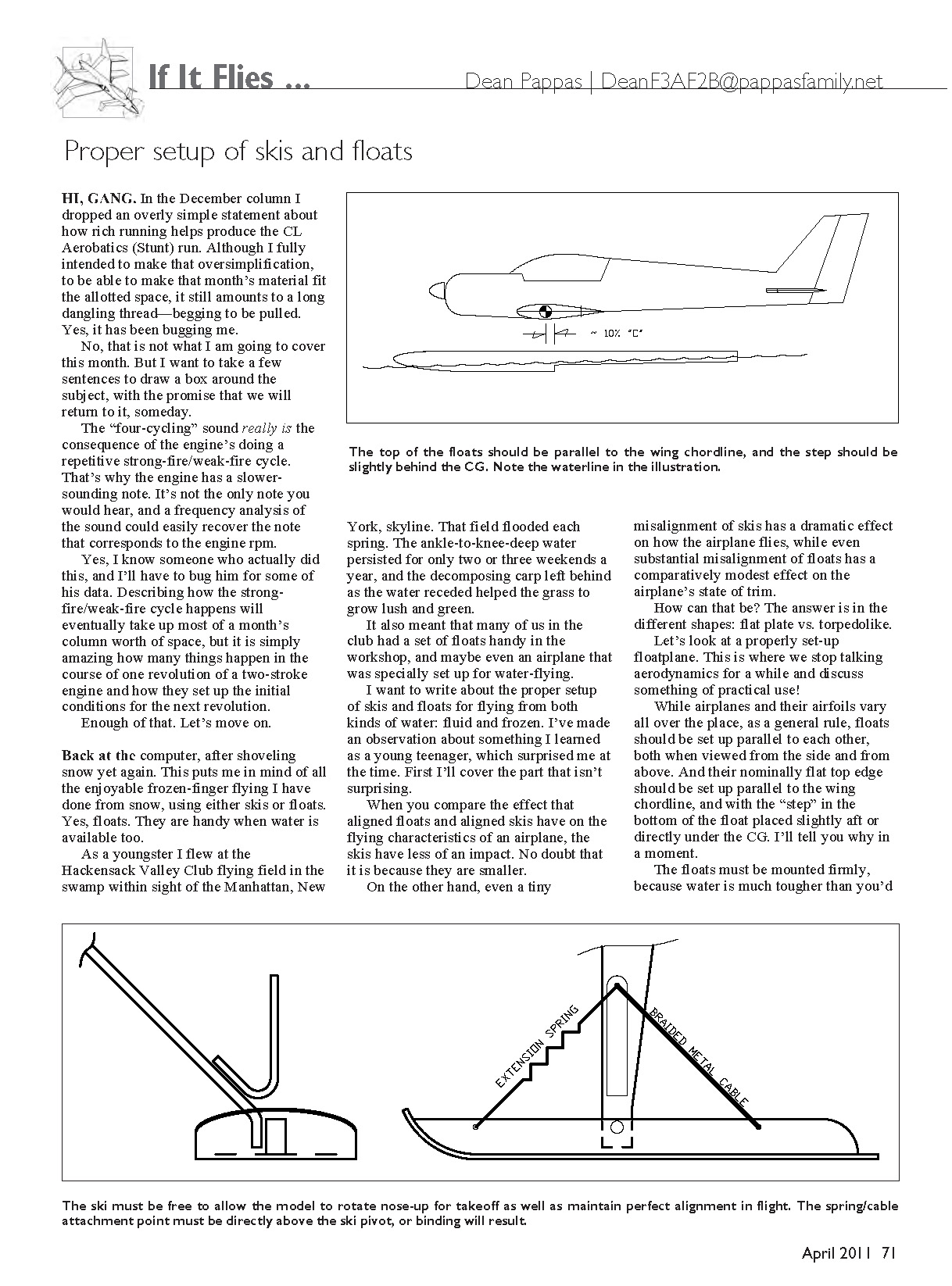 The ski must be free to allow the model to rotate nose-up for takeoff as well as maintain perfect alignment in flight. The spring/cable