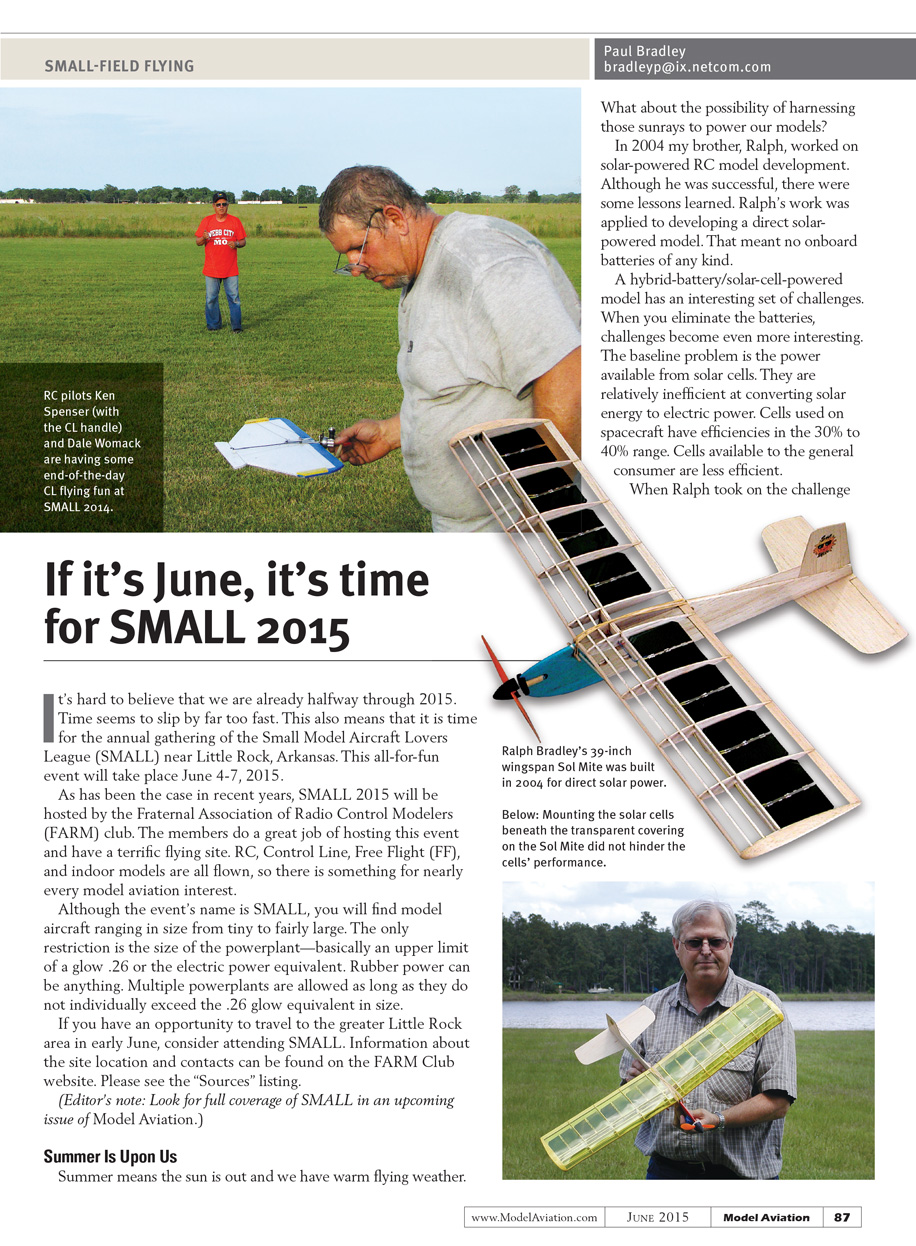 It’s hard to believe that we are halfway through 2015 already. Time seems to slip by far too fast. This also means that it is time for the annual gathering of the Small Model Aircraft Lovers League (SMALL) near Little Rock, Arkansas. This all-for-fun event will take place June 4-7, 2015.