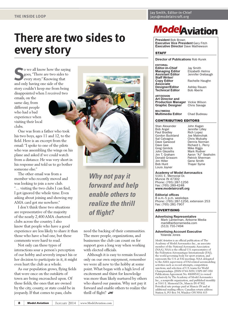Although it is easy to remain focused on only our own enjoyment, remember we were all new to the hobby at some point. What began with a high level of excitement and thirst for knowledge was more than likely nurtured by others who shared our passion. Why not pay it forward and help enable others to realize the thrill of flight?