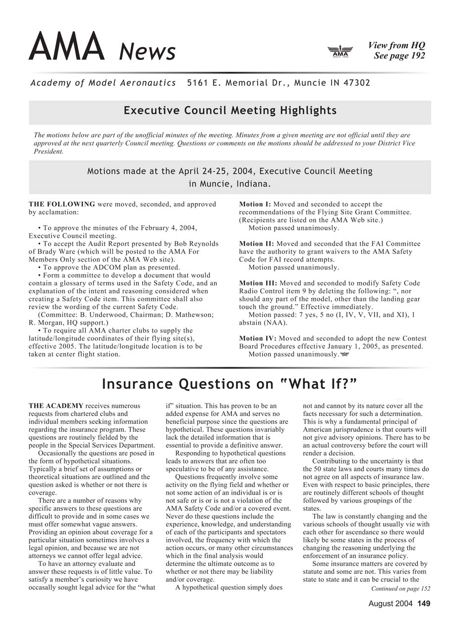 Motions made at the April 24-25, 2004, Executive Council Meeting