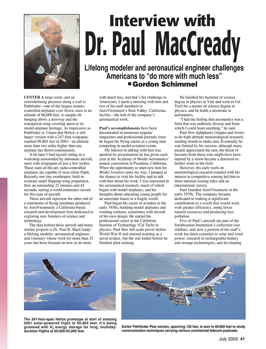 similar projects is Dr. Paul B. MacCready: